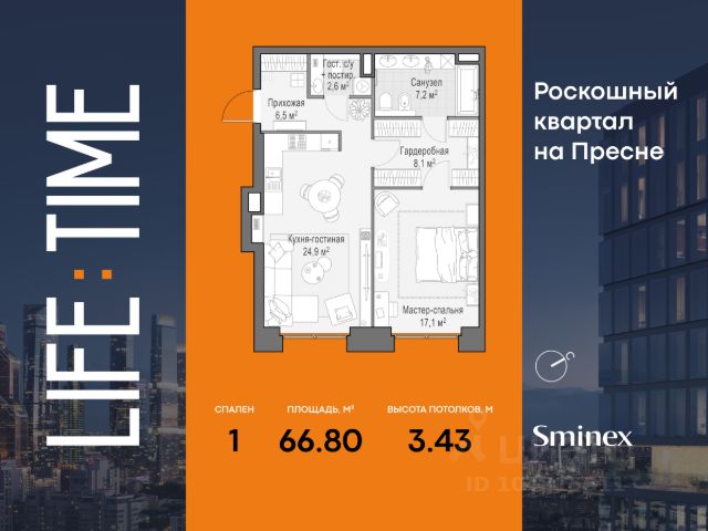 Квартира с одной спальней, обращённая окнами в зелёный благоустроенный двор-парк с ручьём. Продуманная планировка позволяет разместить кухню-гостиную и спальню с санузлом и гардеробной. Life Time - роскошный современный квартал на Пресне, в наиболее быстро растущем премиальном районе ЦАО. Его насыщенная инфраструктура и выгодное расположение дарят время для жизни. Вы больше не тратите его на дорогу или ожидание, при этом ни в чём себе не отказывая. На территории предусмотрено всё для комфортной жизни: • двор-парк площадью 1,8 гектара с прудом и фонтанами; • Clubhouse - инфраструктурный центр в отдельном здании с исчерпывающими возможностями для спорта, отдыха и досуга только для жителей; • спортивная инфраструктура на улице и в помещении, в том числе бассейн длиной 25 метров, хот-таб, хаммам, сауна, бьюти-зона; • клубная гостиная с террасой; • всё для развития и досуга детей любого возраста, в том числе детский сад и школа. Life Time находится в центре сложившегося премиального района, в окружении многочисленных парков. Удобная транспортная доступность и прямой выезд на Звенигородское шоссе позволяют без проблем добраться до Садового кольца и Москва-Сити. Архитектурный стиль квартала - роскошный минимализм. Дома десятилетиями будут выглядеть современно. 1-комнатная квартира на улице 2-я Черногрязская в Москве.