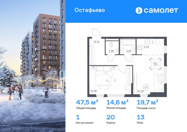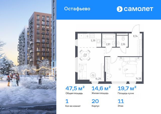Строим кварталы для жизни с заботой о будущем. Предлагается 1-комнатная квартира комфорт-класса площадью 35,81 кв.м в корпусе 21 на 7-м этаже, в жилом комплексе "Остафьево". Застройщик сдает квартиры с отделкой в нескольких вариантах: предчистовая, готовая, улучшенная или вариант без нее. Последний подойдет тем, кто хочет создать свой уникальный интерьер и ничем себя не ограничивать. А если не хочется тратить время на ремонт, можно выбрать опцию — с отделкой. Перед тем как отдать ключи, застройщик установит натяжные потолки, поклеит обои под покраску, положит ламинат светлых тонов, а в санузлах — керамическую плитку и керамогранит. Приобрести квартиру возможно по специальным акциям от застройщика, с текущими условиями акций можно ознакомиться в блоке "Акций". Цена динамическая и может отличаться, уточняйте актуальность у застройщика. "Остафьево" — масштабный жилой комплекс в Новой Москве, рядом с одноименным музеем-усадьбой и городским парком "Барыши". До станций МЦД "Щербинка" и "Остафьево" можно добраться на автомобиле за 57 минут. Часть домов уже сдана, на территории открыты две школы и три детских сада, а в будущем будет построена поликлиника, ТЦ, еще одна школа и три детских сада. Все необходимое рядом: на первых этажах домов работают магазины, аптеки и кафе. Дворы — приватные мини-парки без машин и посторонних. Кроме игровых площадок, для детей обустроили тематический плейхаб "Маяк". В будущем появятся плейхаб "Алиса в стране чудес", арт-объект "Тропа зеркал", а также большой ландшафтный парк. В квартале — монолитные дома комфортной высоты, от 10 этажей. Светлые фасады украшают кирпичные вставки в теплых природных оттенках.