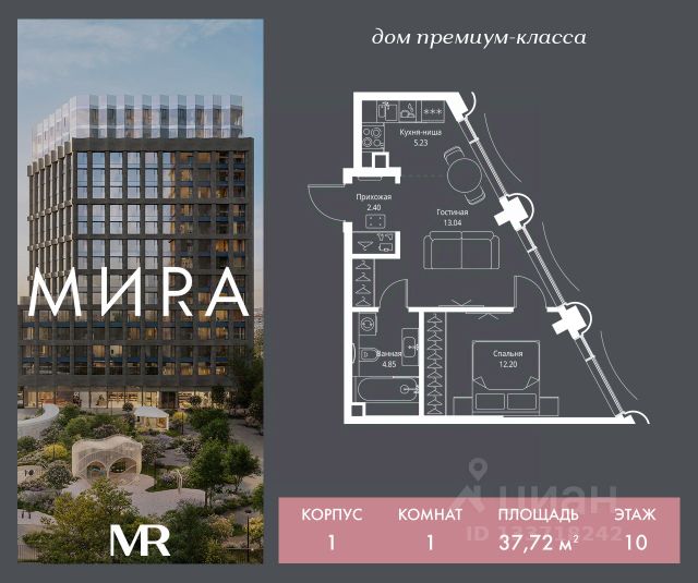 Прямая продажа от застройщика. Продаётся 1-комнатная квартира общей площадью 39.33 м² без отделки в доме премиум-класса МИRА на 3-м этаже 17 этажного дома. Квартира расположена в корпусе 1. Дом премиум-класса МИRA это: • Спокойный район с богатой историей и сложившейся инфраструктурой • Авторская архитектура на стыке классики и современности • Вход в парк прямо из жилого комплекса • Панорамные виды на Яузу, парки, ВДНХ и скульптуру "Рабочий и колхозница" • Удобные сервисы и безопасность для каждого резидента Расположение: Жилой квартал расположен в Алексеевском районе на северо-востоке Москвы, на второй линии домов, таким образом вы сможете дистанцироваться от шума и суеты проспекта Мира, но при этом будете жить недалеко от этой важной городской магистрали. Прямо у дома: • Парк Акведук • Река Яуза • Памятник "Рабочий и колхозница" Пешком: • 16 мин м. ВДНХ На автомобиле: • 12 мин ТТК • 15 мин Садовое кольцо • 12 мин Национальный парк "Лосиный остров" Благоустройство: Концепция благоустройства от бюро "ДРУЖБА" разработана в стиле "Лесная тропа". В уютном дворе расположились словно затерянные в лесу, площадки для отдыха. Они разделяются островками с травами, кустарниками, крупными камнями и деревьями, между которыми проходят узкие песчаные тропинки с деликатной подсветкой по вечерам. Центральной точкой притяжения для жителей станет главная площадь с фонтаном, которая открывается сразу из двух входных групп. Внутренний двор МИRA: • Детская площадка с зонами для игр малышей до трех лет и детей более старшего возраста • Спортивная площадка с профессиональным оборудованием для тренировок • Декоративные перголы • Воздушный арт-объект с подсветкой, похожий на облако • Чайный домик, где в отдельном отапливаемом павильоне можно в любое время года попить кофе с соседями или устроить камерное семейное чаепитие • Зоны для работы и отдыха с гамаком под навесом, скамейками и креслами Инфраструктура и окружение: В Алексеевском районе есть огромные благоустроенные парки, магазины, гимназии с высоким рейтингом и филиалы ВУЗов, частные и государственные детские сады, модные кофейни и фитнес-центры. В квартале МИRА предусмотрены: • 2 ресторана с видом на парк Акведук • 3 кафе • фитнес-студия • подземный паркинг на 330 машино-мест Компания MR Group предлагает своим клиентам специальные условия приобретения квартир в рамках программ ипотечного кредитования от банков-партнеров. Купить 1-комнатную квартиру в районе Алексеевский в Москве.