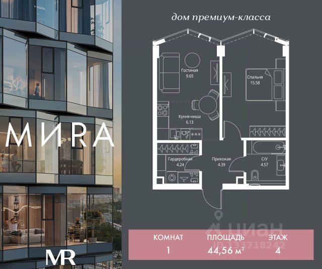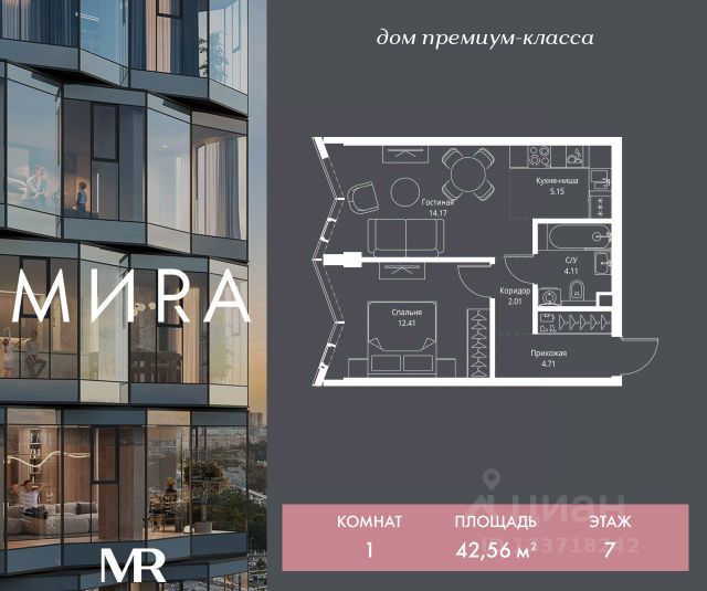 Прямая продажа от застройщика. Продаётся 1-комнатная квартира общей площадью 36.08 м² без отделки в доме премиум-класса МИRА на 7-м этаже 24 этажного дома. Квартира расположена в корпусе 3. Дом премиум-класса МИRA это: • Спокойный район с богатой историей и сложившейся инфраструктурой • Авторская архитектура на стыке классики и современности • Вход в парк прямо из жилого комплекса • Панорамные виды на Яузу, парки, ВДНХ и скульптуру "Рабочий и колхозница" • Удобные сервисы и безопасность для каждого резидента Расположение: Жилой квартал расположен в Алексеевском районе на северо-востоке Москвы, на второй линии домов, таким образом вы сможете дистанцироваться от шума и суеты проспекта Мира, но при этом будете жить недалеко от этой важной городской магистрали. Прямо у дома: • Парк Акведук • Река Яуза • Памятник "Рабочий и колхозница" Пешком: • 16 мин м. ВДНХ На автомобиле: • 12 мин ТТК • 15 мин Садовое кольцо • 12 мин Национальный парк "Лосиный остров" Благоустройство: Концепция благоустройства от бюро "ДРУЖБА" разработана в стиле "Лесная тропа". В уютном дворе расположились словно затерянные в лесу, площадки для отдыха. Они разделяются островками с травами, кустарниками, крупными камнями и деревьями, между которыми проходят узкие песчаные тропинки с деликатной подсветкой по вечерам. Центральной точкой притяжения для жителей станет главная площадь с фонтаном, которая открывается сразу из двух входных групп. Внутренний двор МИRA: • Детская площадка с зонами для игр малышей до трех лет и детей более старшего возраста • Спортивная площадка с профессиональным оборудованием для тренировок • Декоративные перголы • Воздушный арт-объект с подсветкой, похожий на облако • Чайный домик, где в отдельном отапливаемом павильоне можно в любое время года попить кофе с соседями или устроить камерное семейное чаепитие • Зоны для работы и отдыха с гамаком под навесом, скамейками и креслами Инфраструктура и окружение: В Алексеевском районе есть огромные благоустроенные парки, магазины, гимназии с высоким рейтингом и филиалы ВУЗов, частные и государственные детские сады, модные кофейни и фитнес-центры. В квартале МИRА предусмотрены: • 2 ресторана с видом на парк Акведук • 3 кафе • фитнес-студия • подземный паркинг на 330 машино-мест Компания MR предлагает своим клиентам специальные условия приобретения квартир в рамках программ ипотечного кредитования от банков-партнеров. Купить 1-комнатную квартиру в районе Алексеевский в Москве.