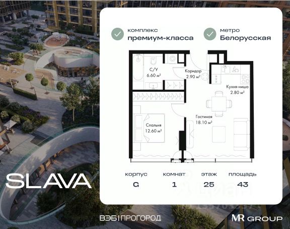 Квартиры премиум-класса в жилом комплексе SLAVA у м. "Белорусская" от застройщика. В продаже 1-комнатная квартира площадью 42.60 м² на 3-м этаже корпуса D. Новый современный жилой комплекс премиум-класса SLAVA расположен в той части центра, где традиция соединяется с прогрессивными городскими тенденциями. Здесь историческая Москва встречается с передовым миром. Популярные театры и старинные церкви соседствуют с современным деловым кварталом и гастрономическим кластером Депо. SLAVA находится всего в 5 мин. пешком от м. "Белорусская", по-новому открывая Ленинградский проспект. Проект был разработан легендарным архитектором Хельмутом Яном, основателем чикагского архитектурного бюро Jahn. Его работы отмечены множеством наград и реализованы в мегаполисах по всему миру. По замыслу архитекторов, жилой комплекс образуют четыре высотные башни, соединенные одноэтажным стилобатом "Хронограф". Здесь, на первом уровне, открытые и закрытые общественные пространства: небольшие сады, места для встреч и отдыха, кафе, рестораны, магазины, спортивный центр и даже выставочное пространство. Важнейшей особенностью пространства является его всесезонность: благодаря правильной организации, ландшафтному дизайну, инженерной инфраструктуре здесь будет уютно и в жару, и в xолод, и в ненастье. На втором уровне стилобата расположится приватный парк для жильцов. Особенности комплекса: - Идеальное расположение в престижной части Москвы (10 мин. от Кремля) - Панорамное остекление - Подземный паркинг с дизайнерской отделкой - Современные инженерные системы - Продуманная внутренняя инфраструктура - Приватный сад 7700 кв.м. Расположение комплекса: - 5 минут до станции метро "Белорусская" - 3 минуты до ТТК - 8 минут до "Садового кольца" Компания MR Group предлагает своим клиентам специальные условия приобретения квартир в рамках программ ипотечного кредитования от банков-партнеров. Продается 1-комнатная квартира в районе Беговой в Москве.