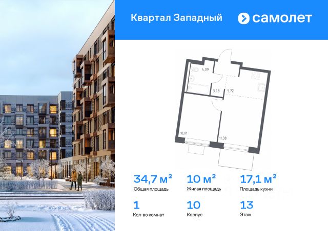 Строим кварталы для жизни с заботой о будущем. Предлагается 1-комнатная квартира комфорт-класса 41,44 кв.м в корпусе 9 на 9 этаже, в ЖК "Квартал Западный" Квартира без отделки. Доступность опции "отделка" и возможность комплектации мебелью и декором уточняйте у застройщика. Приобрести квартиру возможно по специальным акциям от застройщика, с текущими условиями акций можно ознакомиться в блоке "Акций". Цена динамическая и может отличаться, уточняйте актуальность у застройщика. Жилой комплекс в окружении лесопарков и рядом с рекой. До станции МЦД-4 "Санино" можно дойти пешком за 7 минут, а на территории проекта появится транспортно-пересадочный узел с торговым центром. Для жителей построят школу, 2 детсада, в одном из которых будут развивающие кабинеты-трансформеры. Дворы — тихое зеленое пространство без машин. В проекте появится собственный ландшафтный парк с благоустроенной набережной и центральная площадь, на которой будут проводиться различные мероприятия. Высота домов — от 5 до 15 этажей. Фасады выполняют в естественных оттенках, в соответствии с дизайн-кодом "Полевой луг". У каждой секции — свое цветовое решение. Белый цвет верхних этажей добавляет застройке легкости. Фасады облицованы клинкерным глазурованным кирпичом, который используют в проектах бизнес-класса.