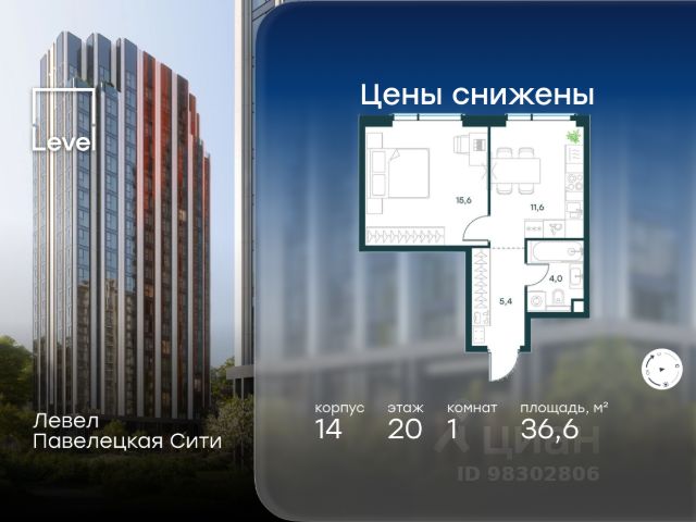 Цена указана с учётом скидки при 100%-й оплате, несубсидированной ипотеке, рассрочке (кроме программы "Рассрочка 0%"). В Даниловском районе столицы (ЮАО) продаётся 1-комнатная квартира площадью 36.60 кв.м без отделки. Квартира расположена на 20 этаже 27-этажного корпуса 14 в жилом комплексе бизнес-класса Левел Павелецкая Сити. Высота потолков 3.00м. Престижная локация Жилой комплекс бизнес-класса Левел Павелецкая Сити расположен в престижном Даниловском районе Москвы - историческом центре города в окружении парков, Москвы-реки и новейшей инфраструктуры. В 20 минутах пешком есть 3 станции метро, а в 5 минутах езды на авто - ТТК и Садовое кольцо. - 15 мин. пешком до метро "Павелецкая"; - 20 мин. пешком до станций "Тульская" и "Серпуховская"; - 8 мин. на авто до Кремля; - 10 мин. на авто до парка Горького и парка "Зарядье"; - 20 мин. на авто до башен "Москва-Сити". Авторская архитектура Авторская архитектура Авторская архитектурная концепция разработана бюро СПИЧ. Облик корпусов этапов 1 и 2 отсылает к стилистике архитектуры классического Нью-Йорка и золотой эпохи Голливуда. Корпуса этапа 4 вдохновлены эстетикой ар-деко. Умное линейное расположение корпусов гарантирует потрясающие виды на исторический центр и Москву-реку из большинства квартир. Дизайнерские лобби Изысканные интерьеры лобби жилого комплекса отсылают к классическим фильмам золотой эпохи Голливуда. Классика в жилом комплексе Левел Павелецкая Сити - не имитация, а современное осмысление лучшего в этом стиле. В каждом вестибюле оборудованы стойки ресепшен, комфортные зоны ожидания, гостевые санузлы, мойки для лап животных, колясочные. В корпусах по 3-4 лифта с прямым доступом в паркинг. Площадь лобби - от 47,9 до 114,9 кв. м, высота потолков - до 5,46 м. Благоустройство и инфраструктура Для создания благоустройства было приглашено 2 ведущих бюро - ADM и GAFA. Разноуровневое пространство вмещает в себя игровые площадки для детей всех возрастов, тропы здоровья для пеших прогулок, крытые аллеи с качелями, места для работы на свежем воздухе, многофункциональные спортивные площадки - зоны уличных тренировок, столы для пинг-понга, зоны командных игр. Общая площадь закрытого двора - 4,63 га. Комфорт - это когда рядом всё, что нужно для жизни. В жилом комплексе Левел Павелецкая Сити размещены 85 коммерческих помещений, где откроются супермаркеты, кафе, аптеки и многое другое. В составе проекта также предусмотрены собственный фитнес-клуб, развивающий центр Летово Кидс. Технологии и безопасность - Вайфай в лобби и на придомовой территории; - Автоматизированная система контроля и учета ресурсов; - Круглосуточное видеонаблюдение и охрана; - Круглосуточная связь с охраной через приложение, телефон или кол-центр; - Контроль доступа по биометрической системе распознавания лица; - Усиленный сотовый сигнал в лифтах и паркинге; - Распознавание номеров автомобилей при въезде/выезде в/из паркинга. Продается 1-комнатная квартира На улице Дубининская в Москве.