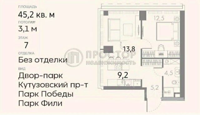 Продается 1-к квартира площадью 48.4 кв.м. на 26-м этаже в жилом комплексе премиум-класса River Park Кутузовский в Башне Emerald Tower О жилом комплексе. Премиальный жилой комплекс River Park Кутузовский строится в одном из самых престижных районов столицы Дорогомилово, на берегу Москвы-реки. Яркий проект в стиле эко-футуризма станет самым масштабным и самым высотным ЖК в локации Кутузовского проспекта. В проекте будет впервые воплощена концепция Family Premium. Расположение и Транспортная доступность: - На берегу Москвы-реки, напротив Москва-Сити - 600 метров до Кутузовского проспекта - Удобный съезд с ТТК - Прямой выезд на МКАД по Северному дублеру Кутузовского проспекта. - В пешей доступности 3 станции метро: Фили, Парк Победы, Кутузовская, а также станция МЦД Фили. Архитектура от именитого бюро ADM отличается уникальной пластикой фасадов - башни словно парят в воздухе, играя гранями как драгоценные камни. Жилой комплекс состоит из 5-ти небоскребов с home park на закрытой территории и внешней торговой галереей с открытым доступом. В закрытом внутреннем дворе уникальная по насыщенности клубная инфраструктура - 5 Towers Club только для жителей: - Многофункциональная спортивная площадка (баскетбол, футбол, воллейбол, большой теннис) - Детский игровой клуб NEMO - Life Rooms с караоке, барной стойкой и meeting room - Music salon - Gedonist Club с бильярдной - Beauty station - Гольф-симулятор Впервые в Москве lounge зоны на крыше небоскребов, только для жителей: - Всесезонные беседки иглу - Джакузи - Барная стойка - Грили - Площадка для занятий йогой - Самые высоки качели на крыше в России - Видовые площадки Благоустройство комплекса занимает 3 гектара и разработано мировым экспертом по городским парковым ландшафтам - голландским бюро WEST8. Концепция проекта дать жителям отдохнуть от городского ритма, расслабиться среди природы и натуральных материалов. В home park будут высажены многолетние деревья по принципу no allergy. - Зеркальный пруд с арт-объектом - Две детские площадки - Work out с навесом - Цветущий сад - Party lounge - Видовая зона отдыха с очагом - Солярий На территории жилого комплекса планируется строительство крупного образовательного центра: детский сад на 200 мест и школа на 460 мест. Продам 1-комнатную квартиру на проезде Кутузовский в Москве.