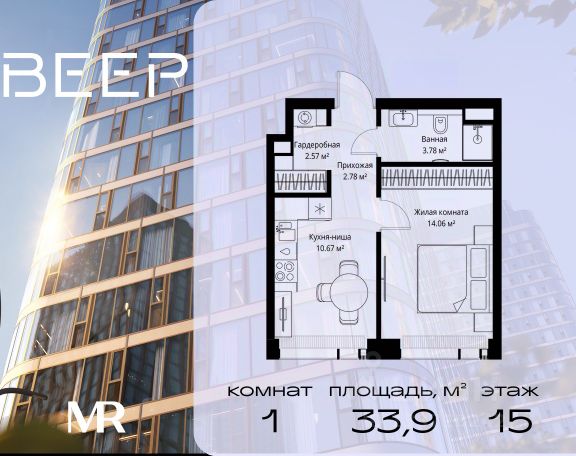 Прямая продажа от застройщика. В ЖК Сет продается 1-комнатная квартира площадью 34.42 м², расположенная в корпусе Б, на 54 этаже 59 этажного дома. Сет имеет стратегически выгодное расположение в ЗАО, в районе с большой историей и блестящим будущим: между природной зоной долины реки Сетунь и Кутузовским проспектом. В рамках возведения первой очереди предусмотрено три корпуса высотой 18, 45 и 59 этажей. На верхних этажах спроектированы общедоступные смотровые площадки с панорамным обзором на центр столицы. Преимущества проекта: • Функциональные планировочные решения • Контроль проникновения через входную дверь • Система управления освещением и температурой в квартире • Система защиты от протечек с функцией перекрытия воды • Вход в подъезд по биометрическим считывателям Face ID • Скоростные лифты • Двухуровневый подземный охраняемый паркинг на 495 машино-мест Застройка Сет включает в себя не только жилые корпуса, но и инфраструктурные объекты. Все необходимое для повседневного комфорта будет расположено в шаговой доступности: • Фитнес-Клуб с бассейном • Ведущая городская школа, детский сад и школа искусств • Центр культуры и досуга • Медицинский центр • Кафе и рестораны Расположение комплекса: Пешком: • Метро "Давыдково" - 17 минут • Парк "Долина реки Сетунь" - 3 минуты • Открытие новых станций метро в шаговой доступности в будущем Инфраструктура: Разнообразить свой день резиденты Веер смогут также проводя больше времени на свежем воздухе. Двор разделен на 4 зоны разных эмоций и действий, которые пересечены и соединены веерными прогулочными маршрутами: • Спортивная площадка устроена в глубине "Кленовой рощи" • В "Чайном домике" будет создан навес с утеплением для отдыха в любую погоду • Площадки для детей воплотятся в "Волшебный лес" с цветами, зеркалами и световым дизайном • "Центральная площадь" устроена у водного оазиса живописного пруда. На машине: • "Москва-Сити" - 15 минут • Садовое кольцо - 20 минут • ТЦ "Океания" - 8 минут • ТЦ "Времена года" - 13 минут • Сколково - 12 минут • Гребной канал - 17 минут Компания MR предлагает своим клиентам специальные условия приобретения квартир в рамках программ ипотечного кредитования от банков-партнеров.