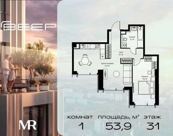 Прямая продажа от застройщика. Продаётся 1-комнатная квартира общей площадью 39.30 м² без отделки в ЖК Веер на 43-м этаже 59 этажного дома. Жилой комплекс бизнес-класса Веер от компании MR — это футуристичный мультиквартал, расположенный в престижной локации на западе Москвы. Благодаря переменной высоте башен — двух 22-этажных, 46-этажной и двух 59-этажных — возникает динамичность в силуэте комплекса, а его яркий образ вносит разноплановость в архитектурный пейзаж района. Расположение и транспортная доступность: • Веер удобно расположен в непосредственной близости от Кутузовского проспекта, обеспечивая быстрый доступ к центральным районам Москвы • Комплекс находится непосредственно напротив самого большого природного заказника в Москве - парка "Долина реки Сетунь", а за семь минут можно доехать до памятника садово-паркового искусства, Троекуровского леса. • Всего в 15 минутах - центр города, самая престижная бизнес-школа управления России "Сколково", дом творчества "Переделкино". Инфраструктура: Разнообразить свой день резиденты Веер смогут также проводя больше времени на свежем воздухе. Двор разделен на 4 зоны разных эмоций и действий, которые пересечены и соединены веерными прогулочными маршрутами: • Спортивная площадка устроена в глубине "Кленовой рощи" • В "Чайном домике" будет создан навес с утеплением для отдыха в любую погоду • Площадки для детей воплотятся в "Волшебный лес" с цветами, зеркалами и световым дизайном • "Центральная площадь" устроена у водного оазиса живописного пруда. Компания MR предлагает своим клиентам специальные условия приобретения квартир в рамках программ ипотечного кредитования от банков-партнеров.
