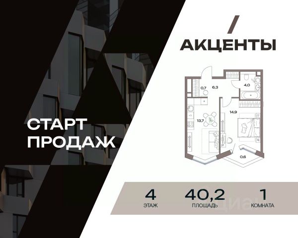 Однокомнатная квартира для пары или начинающего специалиста. -В квартире предусмотрено классическое остекление -Просторная кухня-гостиная с зонированной кухней и зоной отдыха для уютных вечеров -Приватная спальня с зоной гардеробной и рабочим местом -Ниша для системы хранения в коридоре -Наслаждайтесь видами и созерцайте закаты на балконе Молодой район для жизни "Акценты" в классе бизнес-лайт — точка роста на севере Москвы. Он предлагает элегантные и строгие фасадные решения, авторский ландшафтный дизайн, а также функциональные и доступные по цене планировки. Проект находится в семи минутах пешком от станции метро "Лианозово" и одноименной МЦД-1. Добраться до МКАД можно будет за 10 минут на авто, а дорога до центра займет около 20 минут. Жилой комплекс, расположенный в районе Восточного Дегунино, предлагает развитую инфраструктуру для тех, кто ценит выбор. Он имеет удобный доступ не только к транспорту, но и к паркам, школам, садам, больницам и другим социальным объектам. В пешей доступности находятся 4 поликлиники, 5 школ, 6 детских садов, 3 бассейна и баскетбольная академия. Еще рядом есть несколько лесопарков: "Лианозово" с аттракционами и спортивными площадками для тенниса, волейбола и баскетбола, "Останкино" с конным клубом, прудом и пейнтбол-площадками. А "Северные Дубки" — это завораживающее пространство для прогулок под кронами вековых дубов, берез и лип. Кроме того, в районе не будет скучно и юным жителям. Можно оттачивать трюки в скейтпарке "Союз". Ловким и прыгучим советуем записаться в акробатический центр "Белка". Купить 1-комнатную квартиру рядом с метро Бескудниково.