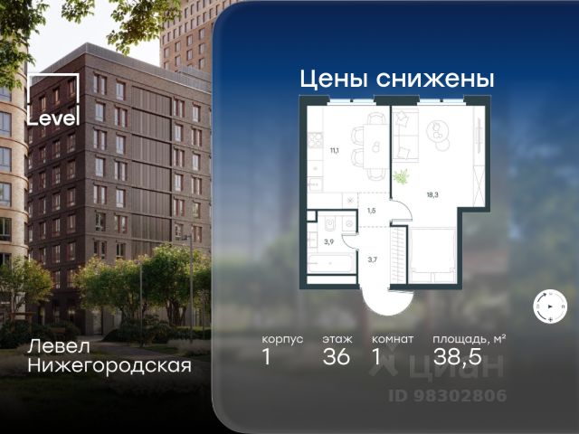 Цена указана с учётом скидки при 100%-й оплате, несубсидированной ипотеке, рассрочке (кроме программы "Рассрочка 0%"). В активно развивающемся районе на юго-востоке столицы продается 1-комнатная квартира площадью 34,6 кв.м без отделки.. Квартира расположена на 33 этаже 37-этажного этажного корпуса 3 в жилом комплексе комфорт-класса Левел Нижегородская (компания Level Group/Левел групп). Отличная транспортная доступность - 10 мин. пешком до станции метро, МЦД-4, БКЛ и МЦК "Нижегородская"; - 13 мин. пешком до станций метро "Андроновка" и "Перово"; - 10 мин. на авто до ТТК; - 14 мин. на авто до Садового кольца. Благоустройство Благоустроенная территория комплекса делится на внешнюю и внутреннюю. Внутренняя часть - это закрытый двор 0,9 га, где обустраиваются детские площадки для разных возрастных групп, беседки для отдыха и работы, несколько спортивных зон, включая зоны для уличных тренировок и лужайку для бадминтона. Здесь же появится ухоженный луг с прогулочными маршрутами. Рядом с жилым комплексом будет создан ландшафтный парк площадью 2,4 га. В парке будут высажены высокие деревья, луговые травы и кустарники, благоустроены лаунж-зоны у пруда, дорожки для бега и прогулок. В центре парка предусмотрена событийная площадь, рядом расположатся дополнительные спортивные и детские площадки, а также зона для выгула домашних питомцев. Внутренняя инфраструктура Дома жилого комплекса будут оснащены коммерческими помещениями, где откроются все необходимые сервисы: магазины, аптеки, салоны красоты, кофейни, службы доставки и многое другое. Комфорт - это когда всё рядом. Кроме того, на территории жилого комплекса Левел Нижегородская предусмотрен подземный отапливаемый паркинг. Этап 1 включает 335 машино-мест и 143 кладовых помещения для хранения сезонных вещей. Технологии и безопасность На территории всех общественных зон постоянно ведется видеонаблюдение и предусмотрен высокоскоростной вайфай. Подъезды, паркинг и внутренний двор оснащены системой контроля доступа. Для удобства жителей создано мобильное приложение, позволяющее связаться с управляющей компанией, осуществлять удаленное управление видеодомофоном или просмотреть изображение отдельных видеокамер по заявке. Для безопасного перемещения по этажам и комфортного спуска в паркинг будут установлены современные лифты от компании BLT Brilliant Elevator. Скорость лифтов - 1,6 - 2,5 м/с. Особенности - Архитектура от экспертов из бюро ARCH(E)TYPE; - Разноуровневая застройка - от секций средней этажности до высоток в 45 этажей (этап 1); - Окна шириной до 2,2 метров (этап1) с видами на Останкинскую башню, Измайловский парк, "Москва-Сити" и Кусковский лесопарк; - Лобби с окнами в пол и потолками от 3,4 метров, оснащенные консьерж-сервисом; - Более 35 видов планировок, включая редкие форматы. Артикул 3-376.