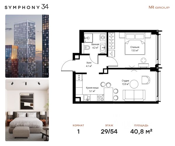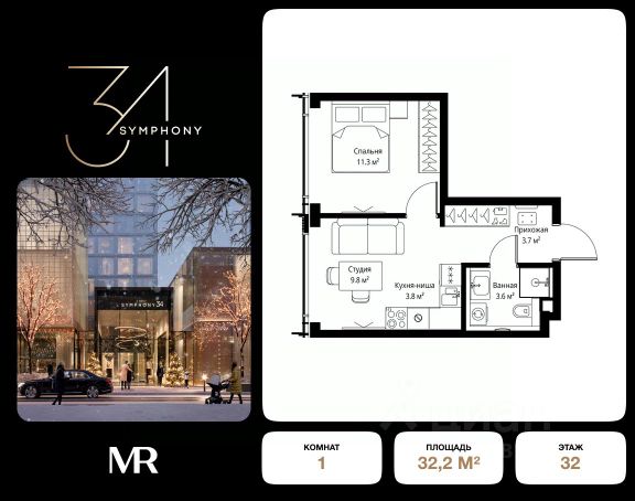 Дом сдан. Ключи в день покупки! В продаже 1-комнатная квартира площадью 29.10 м² с предчистовой отделкой на 38 этаже 54 этажного дома в корпусе Графит. ЖК Симфония 34 - концептуально новый жилой комплекс премиум-класса с подземной парковкой, состоит из четырех башен высотой 36 - 54 этажа. Квартиры сдаются с базовой (предчистовой) отделкой MR BASE или дизайнерской чистовой отделкой MR READY. Высота потолков 3 - 6 метров, окна высотой до 2,6 м. Более 100 кладовых в подземной части ЖК и более 500 на этажах. Безопасность - Система контроля входа на территорию комплекса, биометрия - Система автоматического водяного пожаротушения и противопожарного водопровода, система пожарной вентиляции - Доступ на парковку при помощи системы распознавания автомобильных номеров, карточка для контроля доступа резидентов - Система видеонаблюдения - Круглосуточная связь через приложение, телефон, голосовые сообщения с охраной, консьержем, call-центр. Расположение Пешком - 6 минут до метро "Дмитровская" - 15 минут до Тимирязевского парка На машине - 5 минут до Савеловского вокзала и Аэроэкспресса в Шереметьево - 10 минут до Москва-Сити и Садового кольца Благоустройство - 70% территории отведены под зеленые насаждения и ландшафтный дизайн - Приватный Японский сад - Детские площадки с зонированием по возрасту - Clubhouse для резидентов - Wellness & SPA - Зона для пикника, зона с гамаками - Центральное лобби, ресторан, коммерческие помещения - Дополнительный вход/выход на территорию комплекса Окружение - В 10 минутах от Symphony 34 находится дизайн-завод Flacon, где регулярно проходят культурно-образовательные и развлекательные мероприятия - Тимирязевский парк расположен в 850 м. Площадь парка 232 га - Рядом расположен парк "Дубки", площадью 16,5 га. - В 15 минутах расположен Хлебозавод 9. Здесь находятся шоурумы брендов, кафе разных кухонь мира, образовательные проекты и площадки для мероприятиКомпания MR предлагает своим клиентам специальные условия приобретения квартир в рамках программ ипотечного кредитования от банков-партнеров. Продам 1-комнатную квартиру рядом с метро Дмитровская.