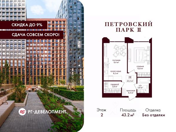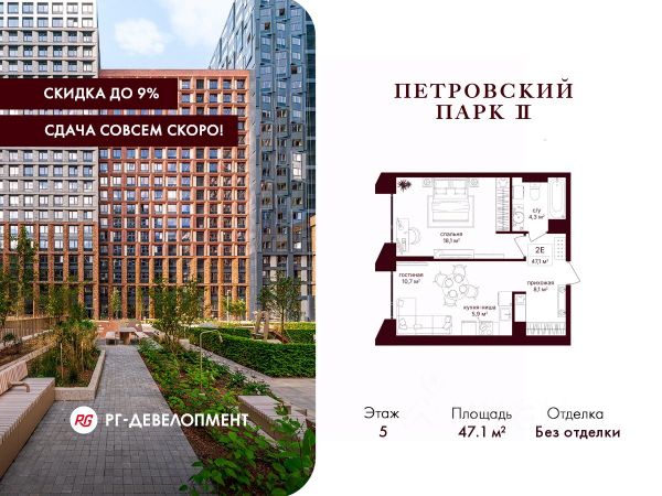 Продаётся 1-комнатная квартира 45,5 кв.м. в ЖК "Петровский парк II" на 7-м этаже 25 этажного дома. Скидка 9% при покупке квартиры! Цена указана с учетом максимального размера скидки. Компания "РГ-Девелопмент" предоставляет скидки на квартиры в жилом комплексе. Акция действительна с 01.10.2025 до 31.10.2025 включительно. Для того чтобы воспользоваться предложением, необходимо подписать договор на приобретение недвижимости до 30.09.25г., включительно. ЖК "Петровский парк II" расположен в историческом районе Москвы, в 5 минутах от парка и станции метро "Динамо". Архитектуру от Syntaxis характеризуют асимметричные фасады, геометрические выступы, напоминающие волны. Эстетика архитектурных форм продолжается в интерьере внутренних пространств - двух центральных лобби и входных группах. На закрытой территории зеленые зоны с цветниками, места для отдыха, спортивные и игровые площадки. Подземная парковка, близость основных магистралей и удобные выезды, которые дают возможность жителям комплекса быть в центре культурной и общественной жизни. Комфортной жизни на территории комплекса расположены магазины, рестораны, частный детский сад. Продам 1-комнатную квартиру рядом с метро Дмитровская.
