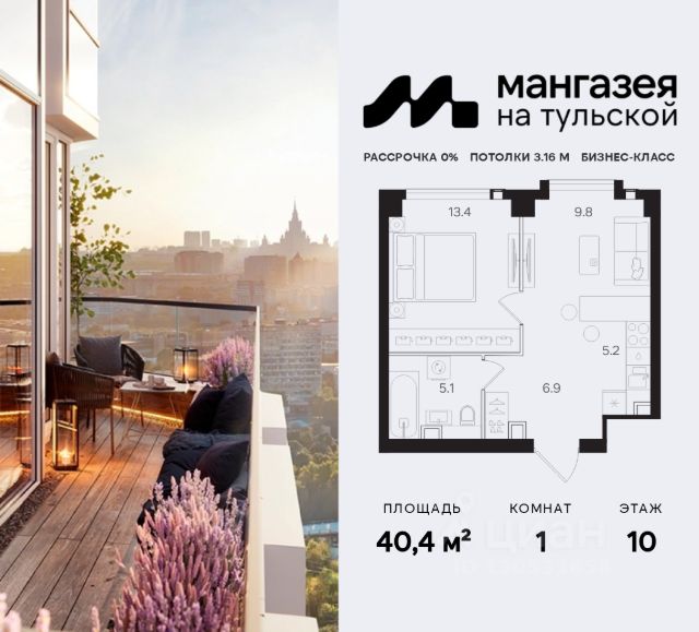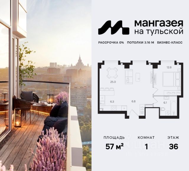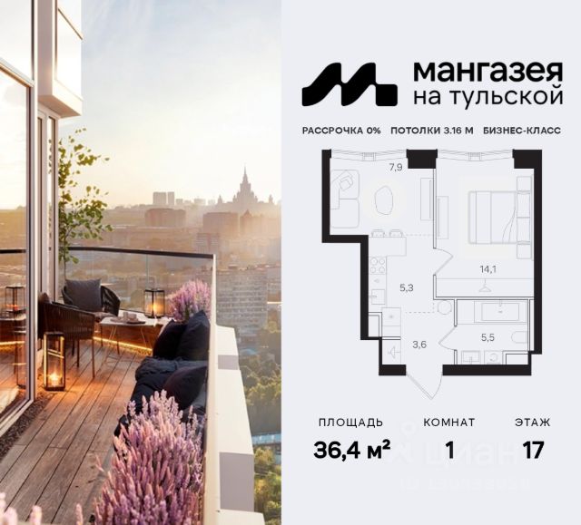 1-комнатная квартира площадью 36,7 м2. Высота потолков - 3,16 м. Этаж 6 из 42. Мангазея на Тульской - премиальные жилые небоскребы в Даниловском районе, в 10 минутах от Садового кольца. Проект состоит из 42-этажной Бронзовой башни и 41-этажной Серебряной. Рядом - набережная Москвы-реки, Даниловский рынок, музеи и галереи, престижные школы и вузы. Инфраструктура • Собственный детский сад • Фитнес-центр 3000 м2 с бассейном, термальным комплексом и гидротерапией • Высокотехнологичная медицинская клиника • Ресторан авторской кухни с террасой • Зона ретейла • Кофейни Двор Приватное трехуровневое пространство с всесезонным озеленением, амфитеатром и лаунж-зонами, уличным коворкингом, плейхабом и скалодромом. На придомовой территории расположится уникальный для Москвы объект - скала из натурального камня с водопадом. Квартиры В небоскребах 916 квартир площадью 28,1-146,4 м2. Особенности лотов: угловое остекление, кухни-ниши, мастер-спальни, ванные с окнами, виды на Москву-реку. Форматы - от студий до двухуровневых пентхаусов и лотов панорамным остеклением, террасами и потолками 3,48 м. Технологии и сервис • Пятиступенчатая система фильтрации и умягчения воды • VRF-кондиционирование - микроклимат для каждого помещения • Фильтрация воздуха в лифтах • Интеллектуальная система безопасности и видеонаблюдение 24/7 • Бронирование общественных зон через консьержа или мобильное приложение За комфорт отвечают консьерж- и беллмен-сервис, инженерная служба и собственная управляющая компания Мангазея Сервис. Кол-центр для резидентов круглосуточно принимает заявки на ремонт и уборку.