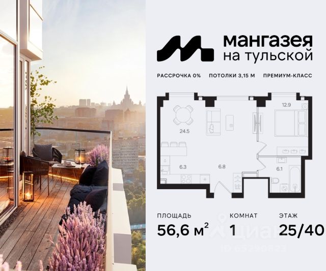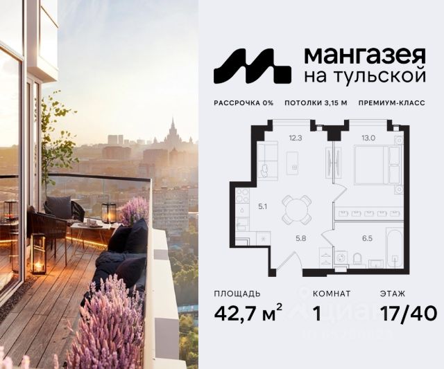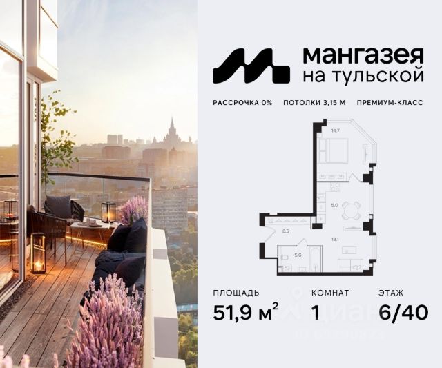 1-комнатная квартира площадью 36,7 м2. Высота потолков - 3,16 м. Этаж 6 из 42. Мангазея на Тульской - премиальные жилые небоскребы в Даниловском районе, в 10 минутах от Садового кольца. Проект состоит из 42-этажной Бронзовой башни и 41-этажной Серебряной. Рядом - набережная Москвы-реки, Даниловский рынок, музеи и галереи, престижные школы и вузы. Инфраструктура • Собственный детский сад • Фитнес-центр 3000 м2 с бассейном, термальным комплексом и гидротерапией • Высокотехнологичная медицинская клиника • Ресторан авторской кухни с террасой • Зона ретейла • Кофейни Двор Приватное трехуровневое пространство с всесезонным озеленением, амфитеатром и лаунж-зонами, уличным коворкингом, плейхабом и скалодромом. На придомовой территории расположится уникальный для Москвы объект - скала из натурального камня с водопадом. Квартиры В небоскребах 916 квартир площадью 28,1-146,4 м2. Особенности лотов: угловое остекление, кухни-ниши, мастер-спальни, ванные с окнами, виды на Москву-реку. Форматы - от студий до двухуровневых пентхаусов и лотов панорамным остеклением, террасами и потолками 3,48 м. Технологии и сервис • Пятиступенчатая система фильтрации и умягчения воды • VRF-кондиционирование - микроклимат для каждого помещения • Фильтрация воздуха в лифтах • Интеллектуальная система безопасности и видеонаблюдение 24/7 • Бронирование общественных зон через консьержа или мобильное приложение За комфорт отвечают консьерж- и беллмен-сервис, инженерная служба и собственная управляющая компания Мангазея Сервис. Кол-центр для резидентов круглосуточно принимает заявки на ремонт и уборку.