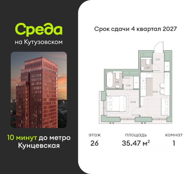 Продаётся уютная однокомнатная квартира площадью 42,2 м² в башне "Гармония" клубного дома "Кутузов Сити". Панорамные окна открывают вид на парк, наполняя квартиру естественным светом и создавая ощущение простора, а высокие потолки делают квартиру ещё более светлой и воздушной. Просторная кухня-столовая станет центром домашней жизни — здесь удобно готовить, собираться всей семьёй или встречать гостей. Изолированная спальня располагает к спокойному отдыху. Правильная форма комнат позволяет без труда разместить всю необходимую мебель и создать гармоничное пространство для жизни. В квартире предусмотрена отдельная зона для гардеробной — это удобно для хранения одежды и поддержания порядка. Ванная комната достаточно просторна для размещения как ванны, так и душа, а также стиральной машины. О проекте: "Кутузов Сити" — клубный дом премиум-класса, созданный совместно с бюро Atrium и Oleg Klodt Architecture & Design. Проект строится в престижном Западном административном округе Москвы, всего в нескольких минутах от Кутузовского проспекта. Закрытая территория, приватный двор, подземный паркинг и дизайнерские лобби создают атмосферу уюта и безопасности. Из окон открываются виды на крупнейшую природную территорию Москвы, а камерная застройка и развитая инфраструктура делают "Кутузов Сити" отличным выбором для тех, кто ценит качество жизни и близость к природе. (Лот: 8)