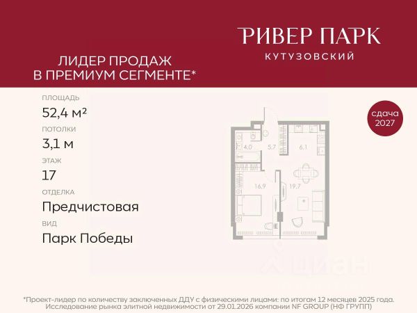 Продается 1-к квартира площадью 48.4 кв.м. на 26-м этаже в жилом комплексе премиум-класса Ривер Парк Кутузовский в Башне Изумруд Премиальный жилой комплекс Ривер Парк Кутузовский строится в одном из самых престижных районов столицы Дорогомилово, на берегу Москвы-реки с лучшими видами на Москва-Сити. Яркий проект в стиле эко-футуризма станет самым масштабным и самым высотным ЖК в локации Кутузовского проспекта. Расположение и Транспортная доступность: • На берегу Москвы-реки, напротив Москва-Сити • 600 метров до Кутузовского проспекта • Удобный съезд с ТТК • Прямой выезд на МКАД по Проспекту Багратиона. • В пешей доступности 3 станции метро: Фили, Парк Победы, Кутузовская, а также станция МЦД Фили. Архитектура от именитого бюро ADM отличается уникальной пластикой фасадов - башни словно парят в воздухе, играя гранями как драгоценные камни. Жилой комплекс состоит из 5-ти небоскребов с приватным парком 2 Га и внешней торговой галереей с открытым доступом. В закрытом внутреннем дворе уникальная по насыщенности клубная инфраструктура только для жителей: • Площадка Мультиспорт (баскетбол, футбол, воллейбол, большой теннис) • Детский игровой клуб Немо • Музыкальная студия • Клуб Гедонист с бильярдной • Студия стиля для стилистов и массажа • Гольф-симулятор • Караоке Впервые в Москве лаунж-зоны на крыше небоскребов, только для жителей: • Всесезонные беседки иглу • Джакузи • Гриль • Площадка для занятий йогой • Самые высоки качели на крыше в России • Видовые площадки Благоустройство комплекса занимает 3 гектара и разработано мировым экспертом по городским парковым ландшафтам - голландским бюро WEST8. Концепция проекта дать жителям отдохнуть от городского ритма и расслабиться среди природы. В Приватном парке уже высажены хвойные деревья-крупномеры сосны и ели. • Зеркальный пруд с арт-объектом • Две детские площадки • Точка спорта с тренажерами и турниками • Цветущий сад • Зеленый театр со сценой и проектором • Видовая зона отдыха с очагом • Солнечная терраса с лежаками На территории жилого комплекса планируется строительство коммерческого образовательного центра, включающего детский сад на 200 мест и школу на 460 мест.
