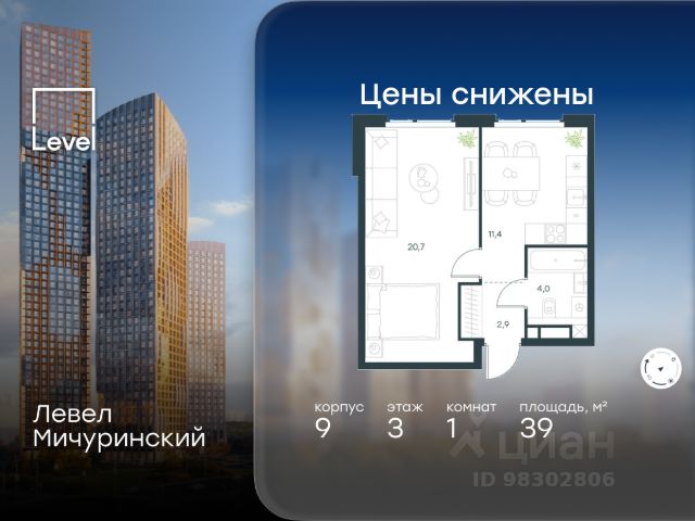 В продаже 1-к квартира от застройщика. Общая площадь 45.70, жилая 16.60, кухня 18.2. Квартира расположена на 13 этаже жилого квартала "Событие-6", корпус 1, Секция 1. Квартира без отделки. Срок сдачи: 4 кв. 2029 года. СОБЫТИЕ.6 — финальный дом парк-квартала СОБЫТИЕ на Мосфильмовской. Переезжайте в уже сформированный квартал с готовой инфраструктурой и парком! Премиальный жилой комплекс в престижном районе Москвы предлагает стильную архитектуру, продуманное благоустройство и великолепно разнообразие общественных пространств. Свой парк прямо возле дома! Архитектура Архитектура СОБЫТИЯ.6 выполнена в ультрасовременном стиле московским бюро Atrium на основе дизайн-кода британских архитекторов LDA Design и UHA London. Дом отличает оригинальная геометрия фасадов, большое остекление и высокие лобби (до 6,2 м) с авторской мебелью и светильниками. Расположение Мосфильмовская улица (Раменки) — один из престижных районов Москвы. Близость к историческому и деловому центру, природным зонам Запада столицы. Транспортная доступность: • 10 мин до Москва-Сити и ТТК; • 15 мин до Садового кольца; • 25 мин до аэропорта Внуково; • 7-10 мин до станций метро "Аминьевская" и "Мичуринский проспект". Инфраструктура: • парк "Событие" (12 га, финалист конкурса Правительства Москвы) с беговыми (1,5 км) и велодорожками (2,7 км), экотропой (1,6 км), площадками, лекторием; • школа, детский сад, магазины, салоны красоты, рестораны (к моменту заселения); • мультидвор с игровыми и спортивными площадками, мини-бульваром; • общественная терраса на 10-м этаже (коворкинг, лаунж); • Закрытые общественные пространства: детская комната, спортивный зал, коворкинг, лаунж-зоны. Паркинг 256 мест для жителей (48 — для электромобилей), 24 гостевых (5 — для электромобилей), мойки колес, кладовые, зоны для велосипедов. Окружение Парки и заповедники (Воробьёвы горы, Матвеевский лес и др.), МГУ, театр им. Н. И. Сац, стадион "Лужники". Безопасность Видеонаблюдение, контроль доступа, видеодомофоны, консьерж-сервис 24/7, системы пожарной безопасности и мультисервисная оптическая сеть.