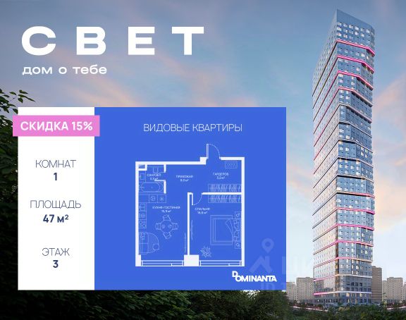 Прямая продажа от застройщика. Продаётся 1-комнатная квартира общей площадью 53.82 м² с предчистовой отделкой в ЖК "Селигер Сити" на 29-м этаже башни Лисицкого. Корпуса четвертой очереди ЖК "Селигер сити" названы в честь трех великих представителей науки и архитектуры, новаторское видение которых — слишком смелое для своего времени — нашло воплощение в уникальных домах жилого комплекса. Вдохновленные авангардными идеями знаменитого советского архитектора Эля Лисицкого, архитекторы создали яркий центр притяжения всего района, задающий новый стандарт жизни в современном мегаполисе — две высокие "Башни Лисицкого" с современной интерпретацией горизонтального небоскреба. Преимущества проекта: - 2 минуты пешком от метро "Селигерская" - Архитектурное решение от голландского бюро MLA + - Одна из самых больших придомовых территорий в Москве - Огороженная охраняемая территория, круглосуточное видеонаблюдение - Европейский подход к благоустройству от бюро Wowhaus: появится парадный бульвар, аллея с фонтаном и арт-объектом, что дополнит уже сформированное благоустройство: детские площадки для разных возрастов, площадки для воркаута, дорожки для бега и пеших прогулок, места для отдыха - Два детских сада, школа начальных классов и центр доп.образования - Искусственный пруд на территории комплекса с благоустроенной набережной и мостом - Продуманная концепция инфраструктуры: уютные кафе и рестораны, супермаркет, магазин фермерских продуктов, бытовые службы, салон красоты, детские сады - Ультрасовременные инженерные решения - Подземный паркинг с зарядными станциями для электромобилей, постами подкачки шин и келлерами - Лобби по индивидуальному дизайн проекту от европейского бюро Вlank Architects: лаунж-зоны, ресепшен, колясочная, помещение для мытья лап животным после прогулки - Надежный девелопер с опытом премиальных проектов MR Расположение комплекса: - 2 минуты от станции метро "Селигерская" - 7 минут на машине до станции метро "Окружная" - Предусмотрен удобный выезд в сторону ТТК (всего 9 км или 15 минут без пробок) - МКАД в 10 минутах на машине Компания MR предлагает своим клиентам специальные условия приобретения квартир в рамках программ ипотечного кредитования от банков-партнеров.