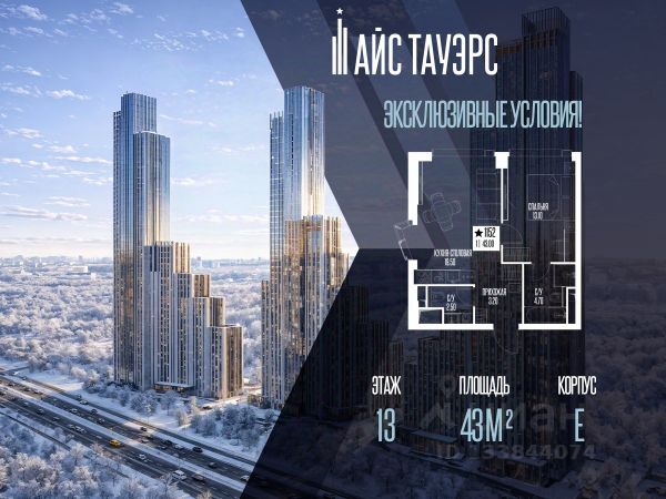 ЖК Айс Тауэрс — жилой комплекс премиум-класса, расположенный в престижном районе Западного административного округа Москвы. Современная архитектура и панорамное остекление формируют динамичный облик комплекса, открывая впечатляющие виды на город и природные территории. Придомовая территория продумана до мелочей: приватные дворы с детскими площадками, воркаут-зоны, места для отдыха и прогулок. Зеленые пространства сохраняют уединённость и создают ощущение жизни в собственном парке. Прямой доступ к особо охраняемой природной зоне делает повседневные прогулки особенно комфортными. ЖК Айс Тауэрс предлагает развитую инфраструктуру и высокий уровень сервиса, которые обеспечивают комфорт на каждом этапе жизни. На территории ЖК есть фитнес-зал, бассейн, термальный комплекс и просторный комьюнити-центр.. В нём оборудованы приватные кабинеты, куда можно пригласить личного массажиста или стилиста, универсальные залы для тренировок, коворкинг-гостиная и тихая библиотека. Также есть детская игровая комната, пространство для мастер-классов и встреч. Особое внимание уделено сервису: круглосуточная консьерж-служба, valet-сервис, беллмены, внутренняя доставка и электронные почтовые ящики. Пространства хранения для велосипедов и колясок, душевые для домашних животных и услуги груминга делают повседневную жизнь удобной и продуманной до мелочей. Все процессы легко контролируются через мобильное приложение: от вызова служб до записи на занятия или услуги. Опционально возможна отделка white box. Комплекс оснащён современными инженерными системами: "умный дом", видеонаблюдение, системы очистки воздуха и бризеры обеспечивают максимальный комфорт и безопасность. ЖК Айс Тауэрс — это закрытое сообщество, где забота о времени и качестве жизни становится стандартом. Купить 1-комнатную квартиру рядом с метро Проспект Вернадского.