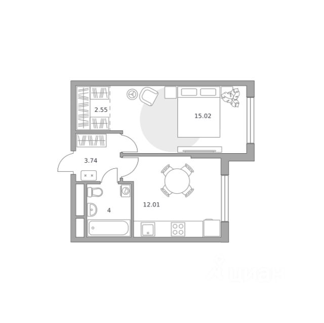Продаётся 1-комнатная квартира 99, площадью 34,95 м², на 8 этаже в ЖК "Притяжение Сити" корпус 8. Стоимость — от 8421687 руб. Квартира без отделки, планировка односторонняя, окна на улицу.