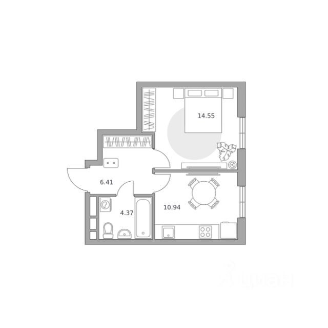 Продаётся 1-комнатная квартира 850, площадью 39,86 м², на 26 этаже в ЖК "Нижегородская от Гранель" корпус 1. Стоимость — от 18685294 руб. Квартира без отделки, планировка односторонняя, окна во двор.