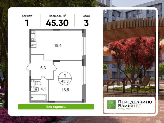 Продается однокомнатная квартира в городе-парке "Переделкино Ближнее". Общая площадь квартиры - 42,2 кв. м, этаж 12 из 17. Срок сдачи - 3 квартал 2026 года. Тип дома - монолитный. Город-парк "Переделкино Ближнее" расположен в 8 км от МКАД по Боровскому шоссе. ТРАНСПОРТНАЯ ДОСТУПНОСТЬ: - 10 минут пешком до МЦД-4 "Мичуринец" - 15 минут пешком до станции метро "Рассказовка" Солнцевской линии - 10 минут на машине до станции метро "Филатов Луг" Сокольнической линии - 30 минут до центра Москвы - Прямой выезд на дорогу Солнцево-Бутово-Варшавское шоссе, минуя жилую застройку всего ЖК БЛАГОУСТРОЙСТВО: Новая фаза строительства уникальна своим расположением - в шаговой доступности парк на Лукинской улицы, река Алёшинка. На территории 18 фазы строительства будут построены 2 монолитных жилых корпуса повышенного комфорта разной этажности 7, 17 этажей. А также многоуровневый паркинг на 300 м/мест. Вход в жилую часть корпусов каждой секции осуществляется с двух сторон - с наружного контура жилого дома и со стороны дворового пространства, предусмотрен безбарьерный доступ. ВНУТРЕННЯЯ ИНФРАСТРУКТУРА: В рамках данной фазы, для жителей предусмотрено создание пространства, свободного от машин - благоустроенные огороженные дворы с современными детскими и спортивными площадками, разделенными на зоны по возрастам. На территории проекта есть все необходимые объекты социальной и бытовой инфраструктуры: детские сады, школы, магазины, паркинги, аптеки, поликлиники, пожарная часть и др. АВТОРСКИЙ ДИЗАЙН: Современный монолитный дом переменной этажности 7 и 17 этажей. На фасаде предусмотрены корзины для установки кондиционеров. Входные группы домов выполнены по авторскому дизайну. Колясочные располагаются при входе, велопарковка на -1 этаже.
