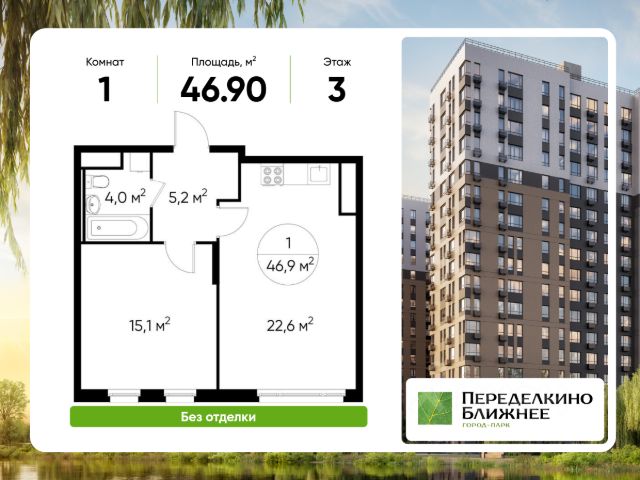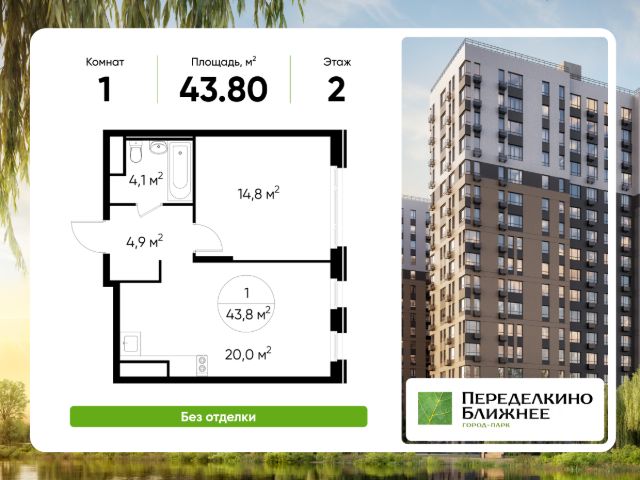 Продается однокомнатная квартира в городе-парке "Переделкино Ближнее". Общая площадь квартиры - 38,3 кв. м, этаж 2 из 17. Срок сдачи - 1 квартал 2028 года. Тип дома - монолитный. Корпус расположен в новой 13 фазе строительства и состоит из 8 секций с переменной этажностью 12-17 этажей. Все секции без отделки. Около 13 фазы запланировано строительство многоуровневого паркинга на 300 м/мест. 13 фаза имеет уникальное расположение и находится непосредственно на берегу Федосьинского пруда, который является сердцем города-парка "Переделкино Ближнее". Город-парк "Переделкино Ближнее" расположен в 8 км от МКАД по Боровскому шоссе. ТРАНСПОРТНАЯ ДОСТУПНОСТЬ: - 15 минут пешком до станции МЦД-4 "Мичуринец" - 25 минут пешком до станции метро "Рассказовка" Солнцевской линии - 30 минут до центра Москвы - 2026 г. - открытие трассы Солнцево-Бутово-Варшавское шоссе РАЗВИТАЯ СОЦИАЛЬНАЯ ИНФРАСТРУКТУРА: - 7 детских садов, 3 школы - банки, продуктовые магазины, аптеки, фитнес центры, салоны красоты и пр БЛАГОУСТРОЙСТВО: - дворы без машин - игровые зоны и развивающие детские площадки - зоны для созерцательного и медитативного отдыха - зоны для занятий спортом ОСОБЕННОСТИ АРХИТЕКТУРЫ: - высокие потолки от 3,03 м - безбарьерные входные группы - колясочные в каждой входной группе - кладовые помещения расположены на -1 этаже каждой секции - в каждой секции 2 лифта: 1 пассажирский, 1 грузовой - на фасаде предусмотрены корзины для установки кондиционеров АВТОРСКИЙ ДИЗАЙН: Входные группы выполнены по авторскому дизайну, благодаря панорамному остеклению наполнены естественным светом. В каждой входной группе будет располагаться комфортабельная зона ожидания с возможностью зарядить электронные устройства, почтовые ящики, колясочная, акцентные пуфы и столик.