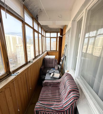 Квартира находится на 5 этаже 6-тиэтажного Сталинского дома с высокими потолками 3м и железобетонными перекрытиями. В подъезде установлен новый современный лифт. В квартире очень тихо, так как все окна выходят в тихий зелёный двор, и балкон застеклен. Соседи очень интеллигентные и воспитанные люди.