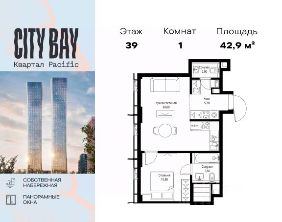 Прямая продажа от застройщика. Продаётся 1-комнатная квартира общей площадью 34 м² без отделки в ЖК City Вау, квартале Pacific, на 20-м этаже 59 этажного дома. Концепция жилого комплекса City Вау - настоящий город в городе с отлично развитой инфраструктурой и собственной благоустроенной набережной. На территории жилого комплекса расположено пять кварталов - Atlantic, Pacific, Indian, North, Cliff. Жилой квартал City Вау отличается оригинальной концепцией и выделяется среди других проектов такими характеристиками как: - Архитектура, - Виды из окон, - Природное окружение, вызывая гордость у жителей и восхищение у прохожих. Вся жизнь района Покровское-Стрешнево строится вокруг водных объектов: - Пойма реки Сходни с уникальной экосистемой, - Речка Химка и Химкинское водохранилище, - Москва-река, - Канал имени Москвы. Кругом вода, и местные с удовольствием этим пользуются. А сразу за рекой - центр водного спорта в Строгино с вейк-парком и яхт-клубами. Помимо воды, здесь очень много зелени: - Рядом Сходненский ковш памятник природы, естественный амфитеатр глубиной 40 метров; - Парк при усадьбе Братцево с фруктовым садом; - Дубовая роща "Маяк", - Алешкинский лес; - Лесопарк Покровское-Стрешнево с пляжами и бобрами. Главные транспортные артерии района: - Волоколамское шоссе, - Таганско-Краснопресненская линия метро и МЦД-2. Всего за 20 минут можно добраться до центра на машине или метро, а МЦД связывает ЖК City Вау с северными, восточными и юго-восточными районами. Компания MR предлагает своим клиентам специальные условия приобретения квартир в рамках программ ипотечного кредитования от банков-партнеров.