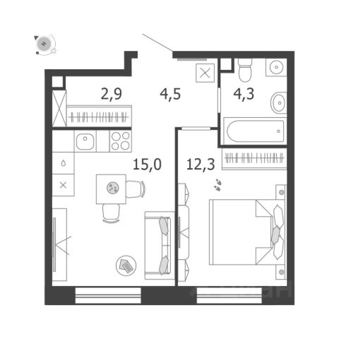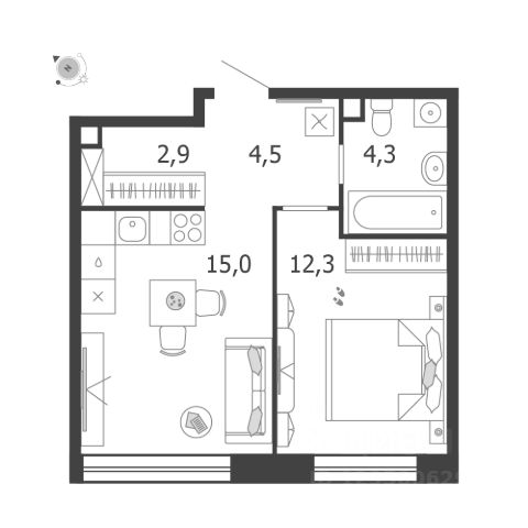 Продается квартира 71, по адресу г. Москва, ЮАО, Даниловский, ул. Автозаводская, вл. 23/75, корпус Жилой квартал Shagal, 3 очередь, 5 этап, корпус 4 в Shagal на 12 этаже, с площадью 39.5 м2.