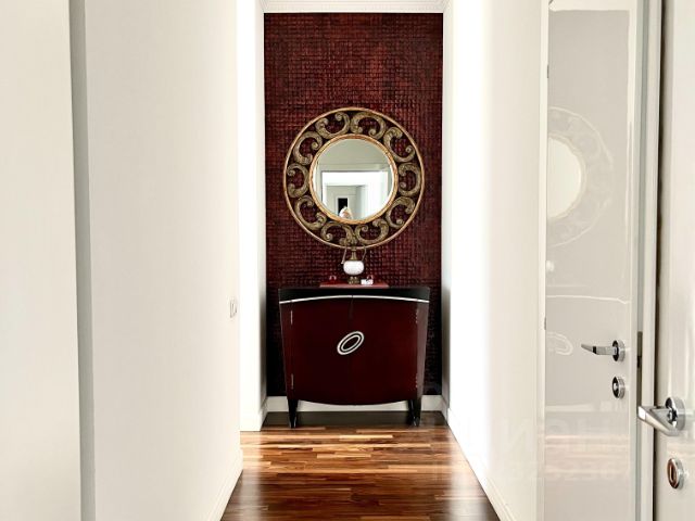 Квартира с чистовой отделкой, климат-контроль, центральное кондиционирование, смонтирована система умного дома, закладные под электрокарнизы. Потолок - 3м в чистоте. Санузел с полноценной ванной, теплым полом, датчиками протечек с автоматическим перекрытием, в т.ч. на кухне и постирочной.