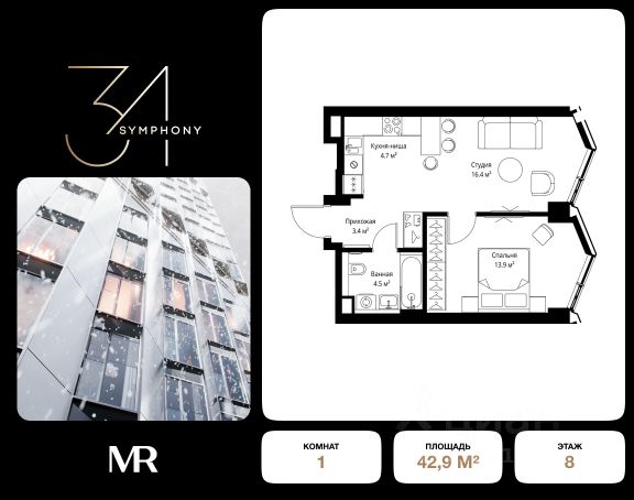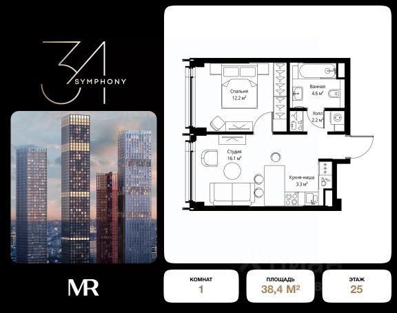 Дом сдан. Ключи в день покупки! В продаже 1-комнатная квартира площадью 41 м² с предчистовой отделкой на 10 этаже 49 этажного дома в корпусе Кристал. ЖК Симфония 34 - концептуально новый жилой комплекс премиум-класса с подземной парковкой, состоит из четырех башен высотой 36 - 54 этажа. Квартиры сдаются с базовой (предчистовой) отделкой MR BASE или дизайнерской чистовой отделкой MR READY. Высота потолков 3 - 6 метров, окна высотой до 2,6 м. Более 100 кладовых в подземной части ЖК и более 500 на этажах. Безопасность - Система контроля входа на территорию комплекса, биометрия - Система автоматического водяного пожаротушения и противопожарного водопровода, система пожарной вентиляции - Доступ на парковку при помощи системы распознавания автомобильных номеров, карточка для контроля доступа резидентов - Система видеонаблюдения - Круглосуточная связь через приложение, телефон, голосовые сообщения с охраной, консьержем, call-центр. Расположение Пешком - 6 минут до метро "Дмитровская" - 15 минут до Тимирязевского парка На машине - 5 минут до Савеловского вокзала и Аэроэкспресса в Шереметьево - 10 минут до Москва-Сити и Садового кольца Благоустройство - 70% территории отведены под зеленые насаждения и ландшафтный дизайн - Приватный Японский сад - Детские площадки с зонированием по возрасту - Clubhouse для резидентов - Wellness & SPA - Зона для пикника, зона с гамаками - Центральное лобби, ресторан, коммерческие помещения - Дополнительный вход/выход на территорию комплекса Окружение - В 10 минутах от Symphony 34 находится дизайн-завод Flacon, где регулярно проходят культурно-образовательные и развлекательные мероприятия - Тимирязевский парк расположен в 850 м. Площадь парка 232 га - Рядом расположен парк "Дубки", площадью 16,5 га. - В 15 минутах расположен Хлебозавод 9. Здесь находятся шоурумы брендов, кафе разных кухонь мира, образовательные проекты и площадки для мероприятиКомпания MR предлагает своим клиентам специальные условия приобретения квартир в рамках программ ипотечного кредитования от банков-партнеров. Продается 1-комнатная квартира в районе Савеловский в Москве.