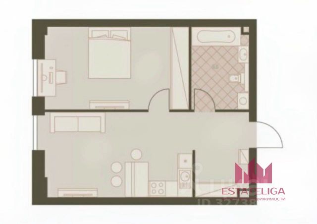 Общая площадь с учетом лоджии 42 м², без лоджии 39.7 м².