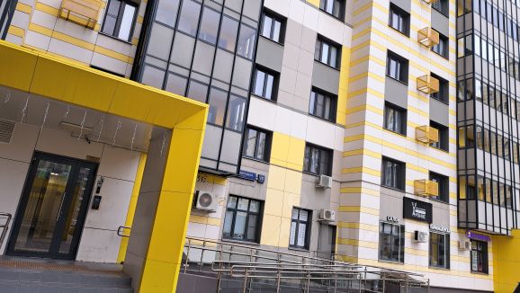 Красивая входная группа, установлен пандус, есть грузовой и пассажирский лифты.