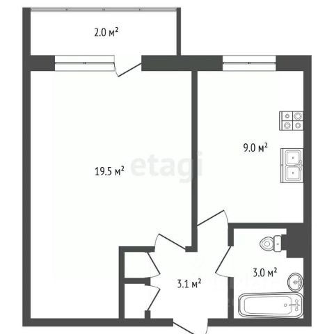 Общая площадь квартиры с учётом лоджии составляет 49,4 кв.м. Без учета лоджии - 40,4 кв.м.