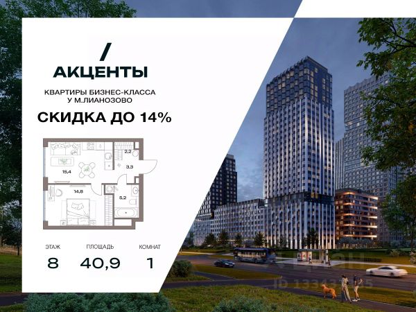 Однокомнатная квартира для молодой пары или начинающего специалиста. -В квартире предусмотрено смешанное остекление -Дополнительные окна в комнатах наполнят квартиру светом и теплом -Кухня-гостиная с зонированной кухней и пространством для отдыха -Приватная изолированная спальня с зоной гардеробной -Удобная ниша в коридоре для системы хранения Жилой комплекс "Акценты" — это монолитный проект бизнес-лайт класса, расположенный в северной части Москвы, в районе Восточное Дегунино. Комплекс объединяет 19 жилых корпусов высотой от 7 до 30 этажей, возводимых на территории 11,7 гектара. В рамках проекта предусмотрены квартиры различной площади — от компактных студий до просторных трехкомнатных решений, с высотой потолков 2,85 м и вариантами отделки, включая чистовую отделку. Благодаря архитектуре бюро АПЕКС и панорамному остеклению, помещения наполняются естественным светом. Удачное расположение рядом с метро "Лианозово" и МЦД делает комплекс удобным как для жизни, так и для инвестиций. Комфорт и безопасность Каждый корпус оборудован современными лифтами с выходом на все этажи, включая подземный паркинг. Входные группы спроектированы с учетом принципов безбарьерной среды: предусмотрены места для колясок и велосипедов. В лобби вас будут ждать уютное пространство с зоной для кофе, стеллажами для обмена книгами и мягкой зоной ожидания такси или курьера. Для автомобилистов организован двухуровневый подземный паркинг на 494 машиномест, с системой распознавания номеров и станцией подкачки шин. Вся территория комплекса закрыта и охраняется: контроль доступа и система видеонаблюдения обеспечивают безопасность жителей. Отдельное внимание уделено цифровой инфраструктуре — проект поддерживает современные "умные" сервисы для комфортного управления бытом. Архитектура Архитектурная концепция ЖК разработана бюро АПЕКС: элегантные фасады с натуральными фактурами, панорамное остекление и переменная этажность формируют выразительный и современный облик. Дизайн каждой секции уникален и дополнен эргономичными планировочными решениями. Ступенчатая структура застройки обеспечивает приватность и оптимальную инсоляцию. Благоустройство На территории комплекса реализована концепция "двор без машин". Центральное пространство оформлено как закрытый двор-сад с пешеходными аллеями, зонами отдыха, террасами и вечерней подсветкой. Здесь находятся детские и спортивные площадки, спортивные площадки, коворкинги на открытом воздухе и зоны отдыха. Также предусмотрены зоны для выгула собак с удобствами для гигиены питомцев. Окружение и досуг ЖК "Акценты" расположен в окружении развитой городской инфраструктуры. В шаговой доступности находятся школы, супермаркеты, спортивные объекты и остановки общественного транспорта. До станции метро и МЦД "Лианозово" можно дойти за 7 минут, а до станции "Яхромская" — за 1215 минут. Поблизости расположены природные зоны — парк "Северные Дубки" и ландшафтный заказник "Лианозовский", где можно гулять, заниматься спортом и отдыхать н