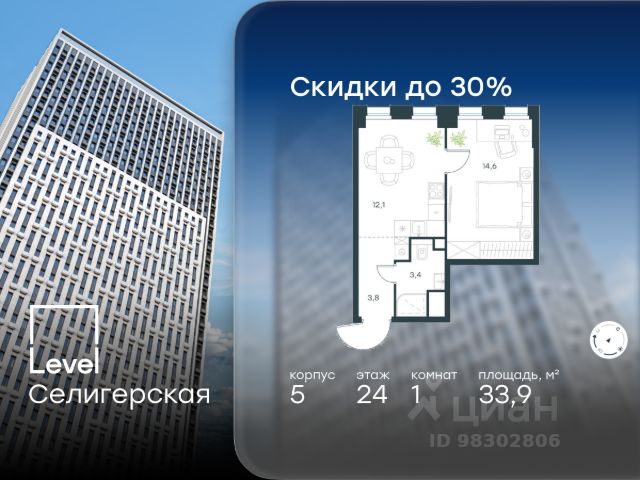 Прямая продажа от застройщика. Продаётся 1-комнатная квартира общей площадью 41.14 м² без отделки в ЖК "Селигер Сити" на 8-м этаже башни Лисицкого. Корпуса четвертой очереди ЖК "Селигер сити" названы в честь трех великих представителей науки и архитектуры, новаторское видение которых — слишком смелое для своего времени — нашло воплощение в уникальных домах жилого комплекса. Вдохновленные авангардными идеями знаменитого советского архитектора Эля Лисицкого, архитекторы создали яркий центр притяжения всего района, задающий новый стандарт жизни в современном мегаполисе — две высокие "Башни Лисицкого" с современной интерпретацией горизонтального небоскреба. Преимущества проекта: - 2 минуты пешком от метро "Селигерская" - Архитектурное решение от голландского бюро MLA + - Одна из самых больших придомовых территорий в Москве - Огороженная охраняемая территория, круглосуточное видеонаблюдение - Европейский подход к благоустройству от бюро Wowhaus: появится парадный бульвар, аллея с фонтаном и арт-объектом, что дополнит уже сформированное благоустройство: детские площадки для разных возрастов, площадки для воркаута, дорожки для бега и пеших прогулок, места для отдыха - Два детских сада, школа начальных классов и центр доп.образования - Искусственный пруд на территории комплекса с благоустроенной набережной и мостом - Продуманная концепция инфраструктуры: уютные кафе и рестораны, супермаркет, магазин фермерских продуктов, бытовые службы, салон красоты, детские сады - Ультрасовременные инженерные решения - Подземный паркинг с зарядными станциями для электромобилей, постами подкачки шин и келлерами - Лобби по индивидуальному дизайн проекту от европейского бюро Вlank Architects: лаунж-зоны, ресепшен, колясочная, помещение для мытья лап животным после прогулки - Надежный девелопер с опытом премиальных проектов MR Расположение комплекса: - 2 минуты от станции метро "Селигерская" - 7 минут на машине до станции метро "Окружная" - Предусмотрен удобный выезд в сторону ТТК (всего 9 км или 15 минут без пробок) - МКАД в 10 минутах на машине Компания MR предлагает своим клиентам специальные условия приобретения квартир в рамках программ ипотечного кредитования от банков-партнеров.