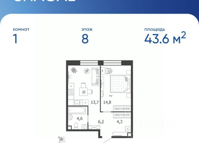 Продается 1-к квартира без отделки в ЖК "Shagal". Общая площадь квартиры — 43.6 кв. м, этаж 8 из 18. Тип дома — монолитный. Цена указана при 100% оплате. Квартал Shagal — крупнейший проект комплексного освоения в Москве. В проекте реализуется продуманная система маршрутов. Еда, покупки, услуги, прогулки, спорт, образование, работа и развлечения — все будет находиться рядом с домом: принцип 15-минутной доступности инфраструктуры и сервисов. Разнообразие и продуманность пешеходных маршрутов, а также короткие расстояния между основными точками притяжения мотивируют резидентов Shagal с удовольствием передвигаться по району пешком, не выпадая из ритма большого города. Продуманная транспортная сеть района и безопасный скоростной режим создают комфортные условия для перемещений любым способом: на автобусе, машине, самокате или велосипеде. Не нужно выезжать из района, чтобы получить комфорт и сервис самого высокого современного стандарта: все необходимые услуги, инфраструктура, парки и вторая по протяженности набережная в городе — на расстоянии 15-минутной прогулки от вашего дома. Квартал Shagal станет первым в Москве жилым районом, где будут комплексно реализованы инновационные подходы в проектировании и строительстве зданий. Архитектурная композиция состоит из домов отличающегося типа. Высотные башни-доминанты с видовыми квартирами, дома пониже, растворяющиеся в спокойствии внутренних двориков, малоэтажные камерные таунхаусы и разноэтажные дома с лоджиями на первой береговой линии соединяются в одно эстетичное современное произведение. В результате создаётся насыщенное идентичное пространство, подчёркнутое плавностью природных форм, наполненное светом, воздухом и свободой.