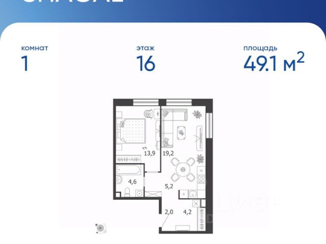 Продается квартира 671, по адресу г. Москва, ЮАО, Даниловский, ул. Автозаводская, вл. 23/75, корпус Жилой квартал Shagal, 3 очередь, 5 этап, корпус 8 в Shagal на 16 этаже, с площадью 49.1 м2.