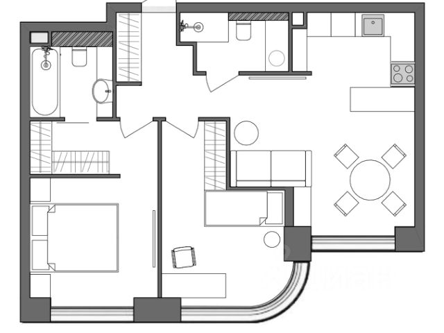 По переуступке от собственника продаётся однокомнатная квартира в ЖК Nagatino-I Land. Удобная планировка: просторная кухня-гостиная, комната правильной формы, отдельная гардеробная. ЖК находится в Даниловском районе, на берегу Москва-Реки. В комплексе предусмотрены собственные школы и детские сады, общественные пространства для жителей.
