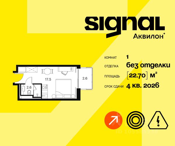 Лот из акционного пула. Цена указана с учетом применения скидки, подробности уточняйте у менеджеров в Офисах продаж. Продажа от застройщика. Продаются уютные однокомнатные апартаменты на 3 этаже 23-этажного современного апарт-комплекса Signal. Срок сдачи: 4 кв. 2026 г. Отделка: Апартаменты передаются в предчистовой отделке white box. Возможен заказ чистовой отделки. Мы выполним все инженерные и черновые отделочные работы, оставив вам самое приятное - создание индивидуального интерьера и неповторимого уюта. А если отпраздновать новоселье хочется как можно скорее, вы сможете заказать чистовую отделку в одном из двух цветовых вариантов: Beigestone или Greystone. Вам останется только завезти мебель и начать наслаждаться жизнью в SIGNAL. Расположение: ЖК Signal расположен на перекрестке столичных маршрутов. По Сигнальному проезду легко выехать на Алтуфьевское шоссе, СВХ и проспект Мира. Транспортная доступность: - 3 минуты пешком до станции Владыкино - 15 минут на автомобиле до ТТК - Ботанический сад в 10 минутах ходьбы Внутренняя инфраструктура Signal: - Фитнес-центр на первом этаже - Игровая площадка и приватном дворе - Коворкинг и уединенные зоны для работы - Торговая галерея Преимущества: - SoundStop - Система защиты от шума, дополнительная шумоизоляция - Система умного дома InHome 3.0 - управление домом нажатием нескольких кнопок - Система Termo-S, позволяющая сэкономить на оплате теплоснабжения - Фитнес-зал позовлит поддерживать себя в форме - Лаунж-зоны, где можно расслабиться - Лобби-бар с большим выбором напитков и закусок - Гостиничный сервис и консьерж reception 24/7 для решения бытовых задач - Апартаменты обслуживает профессиональная управляющая компания - Арт-объекты во дворах для стильного контента Signal - это дом, - чья молодость духа и бодрый настрой заряжают всех, независимо от возраста - который задает абициозную планку с самого начала карьеры - где живут интересные события и встречаются хорошие люди Продается 1-комнатная квартира на проезде Сигнальный в Москве.