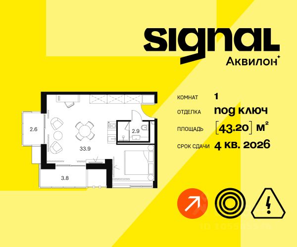 Продажа от застройщика. Продаются уютные однокомнатные апартаменты на 3 этаже 23-этажного современного апарт-комплекса Signal. Срок сдачи: 4 кв. 2026 г. Отделка: Апартаменты передаются в предчистовой отделке white box. Возможен заказ чистовой отделки. Мы выполним все инженерные и черновые отделочные работы, оставив вам самое приятное - создание индивидуального интерьера и неповторимого уюта. А если отпраздновать новоселье хочется как можно скорее, вы сможете заказать чистовую отделку в одном из двух цветовых вариантов: Beigestone или Greystone. Вам останется только завезти мебель и начать наслаждаться жизнью в SIGNAL. Расположение: ЖК Signal расположен на перекрестке столичных маршрутов. По Сигнальному проезду легко выехать на Алтуфьевское шоссе, СВХ и проспект Мира. Транспортная доступность: - 3 минуты пешком до станции Владыкино - 15 минут на автомобиле до ТТК - Ботанический сад в 10 минутах ходьбы Внутренняя инфраструктура Signal: - Фитнес-центр на первом этаже - Игровая площадка и приватном дворе - Коворкинг и уединенные зоны для работы - Торговая галерея Преимущества: - SoundStop - Система защиты от шума, дополнительная шумоизоляция - Система умного дома InHome 3.0 - управление домом нажатием нескольких кнопок - Система Termo-S, позволяющая сэкономить на оплате теплоснабжения - Фитнес-зал позовлит поддерживать себя в форме - Лаунж-зоны, где можно расслабиться - Лобби-бар с большим выбором напитков и закусок - Гостиничный сервис и консьерж reception 24/7 для решения бытовых задач - Апартаменты обслуживает профессиональная управляющая компания - Арт-объекты во дворах для стильного контента Signal - это дом, - чья молодость духа и бодрый настрой заряжают всех, независимо от возраста - который задает абициозную планку с самого начала карьеры - где живут интересные события и встречаются хорошие люди Продается 1-комнатная квартира на проезде Сигнальный в Москве.