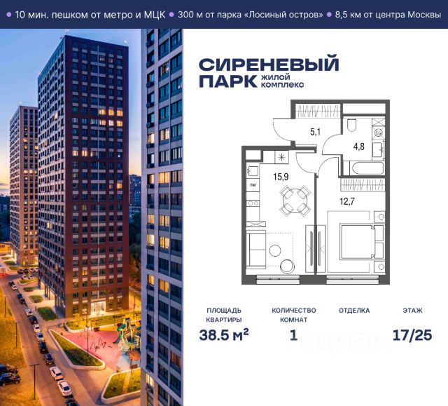 Ипотека для каждого! Полная стоимость кредита от 11,578% до 22,490%. Ставка от 0,11% в АО "Альфа-Банк" фиксируется на 1 год с даты заключения кредитного договора, далее полная стоимость кредита от 25,819% до 28,767% ставка 21,59% до окончания срока кредитования. Первоначальный взнос — от 20% от стоимости квартиры. Срок кредитования — от 3 до 30 лет. Ипотека на весь срок! Полная стоимость кредита от 23,396% до 26,058% со ставкой 14,5%! Первоначальный взнос —от 20,01% от стоимости квартиры. Срок кредитования — от 3 до 30 лет. АО "Банк ДОМ.РФ" универсальная лицензия Банка России 2312 от 19.12.2018. Новогодняя скидка 7% при покупке квартиры! Цена указана с учетом максимального размера скидки. Продается 1-к квартира 39,9 кв.м. в ЖК "Семеновский парк 2" на 3-м этаже 25 этажного дома. Компания "РГ-Девелопмент" предоставляет новогоднюю скидку на квартиры в жилом комплексе. Акция действительна с 12.09.2024 по 31.12.2025 включительно. Чтобы воспользоваться предложением, необходимо подписать договор на приобретение недвижимости до 31.12.2025 включительно. Прямая продажа от застройщика! Квартиры без отделки. Срок сдачи корпуса - 4 кв. 2025 г. ЖК "Семеновский парк 2" - это идеальное место для того, чтобы стать вашим домом. Проект расположен в исторической части Москвы вблизи Измайловского лесопарка, в 1 км от ЦАО. 4 станции метро отделяют вас от Красной площади и 15 минут на автомобиле - от Садового кольца. Продам 1-комнатную квартиру станция Измайлово (МЦК).