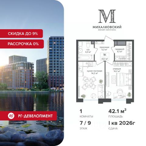 Ипотека для каждого! Полная стоимость кредита от 11,578% до 22,490%. Ставка от 0,11% в АО "Альфа-Банк" фиксируется на 1 год с даты заключения кредитного договора, далее полная стоимость кредита от 25,819% до 28,767% ставка 21,59% до окончания срока кредитования. Первоначальный взнос — от 20% от стоимости квартиры. Срок кредитования — от 3 до 30 лет. Скидка 9% при покупке квартиры! Цена указана с учетом максимального размера скидки. Продаётся 1-к квартира 36,1 кв.м. в ЖК "Михалковский" на 7-м этаже 15 этажного дома. Компания "РГ-Девелопмент" предоставляет скидки на квартиры в жилом комплексе. Акция действительна с 12.09.24 г. до 31.10.25г. включительно. Чтобы воспользоваться предложением, необходимо подписать договор на приобретение недвижимости до 31.10.25г., включительно. Действует программа "Растет семья - растет и квартира". Прямая продажа от застройщика! Старт продаж новых корпусов. Квартиры без отделки. Срок сдачи 1 кв. 2026 г. Особенности проекта: Завораживающие виды Красивое благоустройство Уникальная локация для Москвы (рядом Головинский парк, пруды, усадьба Михалково) Рядом с центром В проекте присутствует: архитектура голландского бюро MLA+, зеленые зоны, транспортная доступность, благоустроенная территория, подземный паркинг, детский сад и выход на Головинский парк с пятью прудами. Название комплекса указывает на одну из его черт - соседство с имением Михалково. Позвольте себе жить в месте, где проводили свой досуг династии Дашковых и Паниных. Продам 1-комнатную квартиру станция Коптево (МЦК).