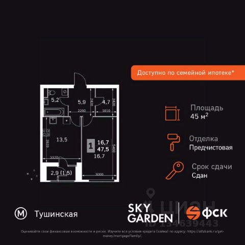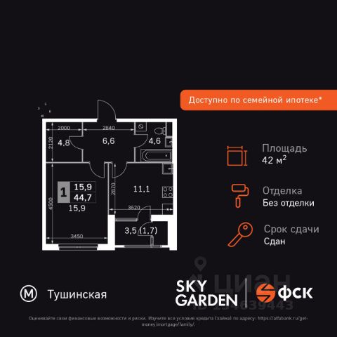 Прямая продажа от застройщика! Жилой Комплекс бизнес-класса. Продаётся 1-к квартира номер 1033 общей площадью 40.6 кв.м. на 6-м этаже 27 этажного здания. Предчистовая отделка. Цена с учётом скидки. Особенности квартиры: - Организуем показ в удобное для вас время! - Просторная спальня, в которой можно разместить большую кровать. - Линейная планировка - максимальная функциональность и удобство. - Увеличенная ширина окна/окон - больше света и визуального простора. - Постирочная - организуйте пространство для стирки и сушки вещей. - Гибкая планировка - создайте пространство по своему вкусу. - Можно оборудовать рабочее место - комфорт для работы и учёбы. - Просторная мягкая зона - комфорт и уют для отдыха всей семьи. - Гардеробная - удобство для хранения и организации вещей. - Лоджия - уютное место для отдыха и тишины. Квартира с предчистовой отделкой. Вам не придется заниматься черновыми и трудоёмкими работы, а чистовую отделку и дизайн - сделайте на свой вкус. Информация о комплексе: ЖК "Скай Гарден" в Покровском-Стрешнево: гармония природы и мегаполиса. Живите среди зелени одноимённого парка, рек и каналов с чистым воздухом, сохраняя все преимущества городской инфраструктуры. Идеальный баланс для тех, кто ценит природу без компромиссов в комфорте. Транспортная доступность: Всего в 12 минутах пешком до м. Тушинская и 15 минутах до станции Тушинская МЦД. На автомобиле: 2 км до Волоколамского шоссе, 2,5 км до МКАД и 15 км до Садового кольца Внутренняя инфраструктура: К вашим услугам игровые площадки для детей с горками и фонтанами. Йога на газоне, воркаут, велопарковки. На территории: поликлиника, аптека, супермаркет, зоны отдыха. Игровая комната в лобби, хранилище для велосипедов в подъездах. Рядом: кафе, пекарня, мастерские, секции. Парк 3,5 га с набережной для прогулок. Всё для жизни и спорта в шаговой доступности. Квартира с предчистовой отделкой - ваш дизайн без черновых работ Купить 1-комнатную квартиру на проезде Строительный в Москве.