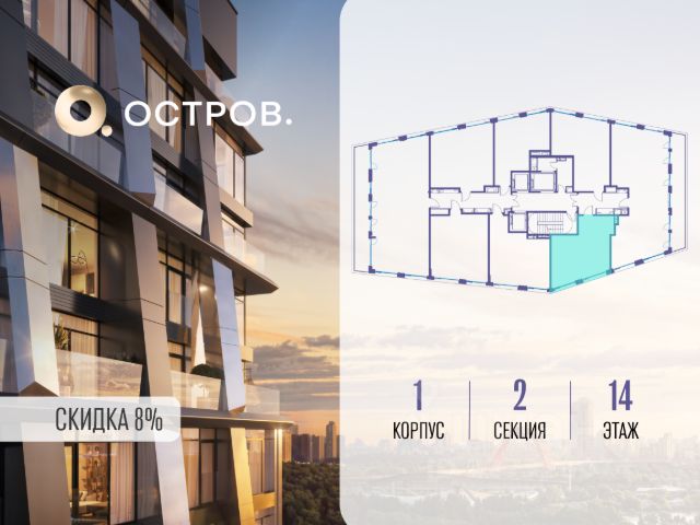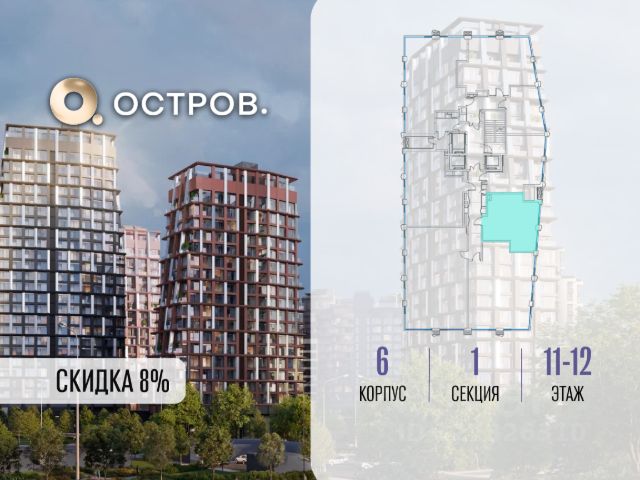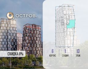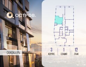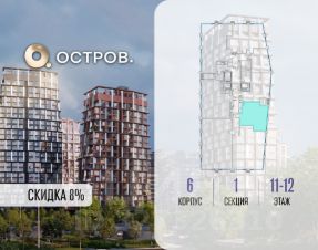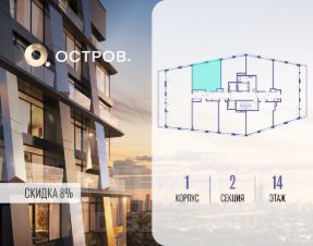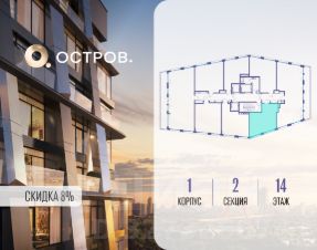 Остров1, общей площадью 42,8 кв. м, расположена в 5 корпусе на 11 этаже.