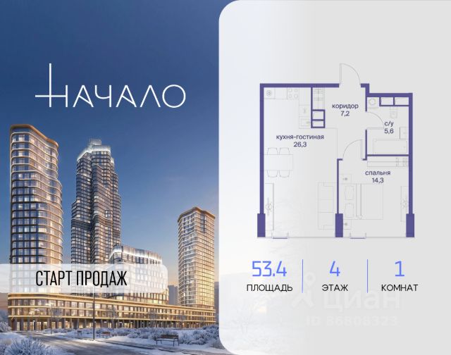 В престижном районе Пресня, на перекрестке делового и исторического центров Москвы, продается однокомнатная квартира площадью 50.40 кв. м без отделки. Квартира находится на 4 этаже 11-этажного дома, в новом элитном жилом комплексе "Начало" от девелопера "Донстрой". Реализация проекта запланирована на 1 квартал 2030 года. Начало - футуристический дом на Пресне в нескольких минутах от Сити и Садового кольца. Проект по-настоящему космического масштаба, где есть все, чтобы раскрыть себя и свои возможности. Расположение Пресня - один из самых престижных районов Москвы. Жить здесь - значит стать частью истории столицы, быть в эпицентре деловой активности города и ощущать, как сама Вселенная вращается вокруг вас. - 5 минут пешком до Красногвардейских прудов; - 15 минут пешком до ст. метро "Улица 1905 года"; - 6 минут на автомобиле до Садового кольца и небоскрёбов "Москва-Сити"; - 12 минут на автомобиле до Кремля. Архитектура как путешествие Как росток пробивает скалу, как растет кристалл, как ракета устремляется ввысь - так формируется архитектурный образ этого дома. Точно выверенный баланс между футуристичными формами и функциональным содержанием дома выводит жизнь в нем на новую орбиту. Стеклянные фасады отражают небо и город, превращая здание в зеркало для окружающего ландшафта. Двор между небом и землёй Просторная территория двора с тремя тематическими зонами отдыха: "Млечный путь" - для детских игр и развлечений; "Космический сад" - для тихого отдыха и релакса; "Метеоритный сад" - для любителей спорта. Открытый променад - сквозной маршрут на крыше стилобата с зонами отдыха, занятий спортом, детских игр и совместной работы. Все площадки плавно связаны между собой прогулочной дорожкой. Теплая кольцевая галерея и мосты над пространством двора - все корпуса "стыкуются", точно модули космической станции. Главный центр притяжения В составе проекта возводится собственный комьюнити-центр, где создана идеальная атмосфера для любых начинаний: - Детский клуб для будущих покорителей Вселенной; - Коворкинги для решения задач планетарного и космического масштабов; - Переговорные для судьбоносных и просто важных встреч; - Лаунжи с атмосферой дзена и релакса; - Библиотека для спокойного чтения; - Кинотеатр для классики и блокбастеров. Территория комфорта и приватности Всё нужное рядом: - Современный образовательный центр со школой и детским садом - для ваших детей; - Фитнес-центр с бассейном - для релакса и борьбы со стрессом; - Ресторанная улица: кафе, рестораны, летние террасы - для деловых обедов и семейных ужинов; - Пекарня и минимаркет в доме - для ежедневных покупок; - Сквер у дома - для неспешных прогулок и спокойного отдыха; - Никаких такси на улице. Машина заберет вас прямо в подземном паркинге вашего корпуса. Купить 1-комнатную квартиру на улице Сергея Макеева в Москве.