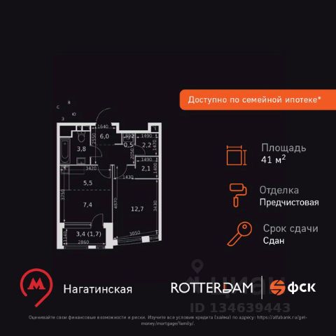 Рассрочка 0% + скидка 5%. Первый платёж 50% при ДДУ, второй 50% — через 12 мес. до ввода ЖК. Продаются 1-комнатные апартаменты 41.3 кв.м. в МФК "Варшавские ворота" на 8-м этаже 9 этажного дома. МФК "Варшавские ворота" — это проект, в котором учтен широкий спектр требований: от транспортной доступности и развитой инфраструктуры до архитектурной выразительности и экологического окружения. Апартаменты в МФК "Варшавские ворота" подойдут для тех, кто ищет продуманное жилье в Москве или готовый инвестиционный актив. Апартаменты здесь — это: - возможность жить комфортно в удобном городском формате — с природой, метро, сервисом и паркингом; - возможность купить лот с готовой отделкой, чтобы вложить минимальные инвестиции в ремонт и получить максимум возможностей от сдачи; - экономия на налоге на имущество, кадастровая стоимость апартаментов ниже ~ на 30% кадастровой стоимости квартиры; - высокая инвестиционная доходность объекта за счет более низкой цены покупки по сравнению с квартирой. Коротко о важном: - 1 минута пешком от м. Аннино; - Удобные выезды на Варшавское шоссе и МКАД; - Вид из окон на Битцевский лес и Аннинский лесопарк; - Высота потолков 2,7 - 3 м; - Закрытый двор-парк; - Школы и детские сады в 10-15 минутах пешком от дома; - Технические лоджии для размещения кондиционеров; - Подземный паркинг; - РГ-Девелопмент — ТОП-20 крупнейших застройщиков России. Проект сочетает в себе современную архитектуру и продуманное благоустройство с уникальным природным окружением. Всего в нескольких минутах от дома — девять парков, каскад прудов и крупнейшие лесопарковые зоны Москвы, создающие ощущение жизни в зеленом оазисе посреди мегаполиса. Архитектурная концепция - стиль Чикаго в Москве. Выполнена в минималистичной эстетике с использованием клинкера и декоративного кирпича. Фасады подчеркивают строгие линии и современный стиль, а входные группы разработаны московским бюро Syntaxis. Лобби оформлены с применением керамогранита, декоративной штукатурки и гипсовых панелей, детали из латуни добавляют изысканности. Пространство оживляют гербарии, композиции из сухоцветов и авторские панно. Проект находится в одной минуте пешком от метро "Аннино", в 12 минутах от станции "Улица Академика Янгеля" и рядом с МЦД-2 "Красный Строитель". Для автомобилистов предусмотрен прямой выезд на Варшавское шоссе и два съезда на МКАД, что позволяет быстро добираться в любую часть города. Среди планировочных решений представлены разнообразные форматы: от функциональных студий до просторных 4-комнатных квартир и апартаментов площадью от 22 до 105 м². Высокие потолки усиливают ощущение простора, а продуманные планировки включают мастер-спальни, гардеробные, угловые окна, объединённые кухни-гостиные и несколько санузлов. Центральное пространство комплекса — закрытый двор без машин. Он разделён на функциональные зоны: детские игровые комплексы, спортивные площадки, воркаут-зоны и уютные места для тихого отдыха. На первых этажах разместя 1-комнатная квартира на шоссе Варшавское в Москве.