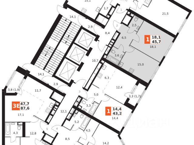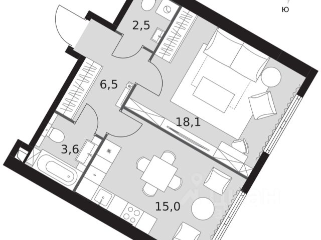 Комната 1 19,1 м2