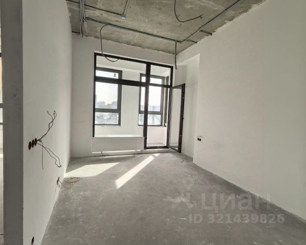 Бетон, предусмотрено место для постирочной и просторной ванной.
