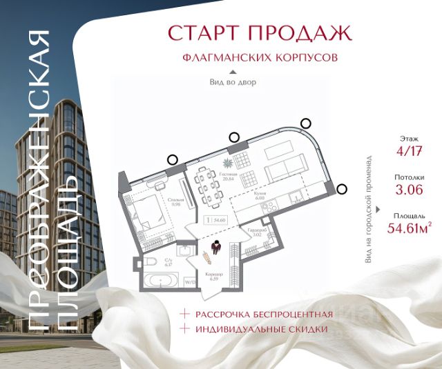 Жилой комплекс "Преображенская площадь" Премиум-класс | старт продаж долгожданных корпусов Открыт старт продаж нового объёма квартир в жилом комплексе "Преображенская площадь". В реализации — долгожданные корпуса проекта, а значит сейчас доступен лучший выбор планировок и наиболее привлекательные условия покупки. Комплекс расположен на первой линии от метро "Преображенская площадь" в историческом районе с развитой инфраструктурой. Удобный выезд позволяет добраться до ТТК всего за 7 минут, до Садового кольца — за 8 минут. Архитектура проекта продумана так, чтобы сохранить ощущение приватности: на каждом этаже расположено всего 35 квартир. Небольшое количество соседей создаёт комфортную, спокойную атмосферу проживания. Входные группы выполнены в формате гранд-лобби с камином, библиотекой и лаунж-зонами. В отделке используются натуральные материалы, формирующие стильное и статусное пространство. Закрытая территория площадью 1,5 га полностью свободна от автомобилей. Пространство двора организовано как ландшафтный парк с прогулочными маршрутами, зонами отдыха и спорта, а также гастропроменадом с кафе и ресторанами. Предусмотрен подземный паркинг с прямым доступом в жилые корпуса. В составе проекта — детский сад и IT-школа 1502 "Энергия", входящая в число лучших школ Москвы и России. Комплекс окружён крупными зелёными зонами: рядом расположены Сокольники, Измайловский и Черкизовский парки, национальный парк "Лосиный остров", ВДНХ и благоустроенная набережная Яузы. Доступна рассрочка 0% при первоначальном взносе от 20%. Старт продаж новых корпусов — возможность приобрести квартиру в премиальном проекте на самых выгодных условиях. Звоните для подробной консультации.