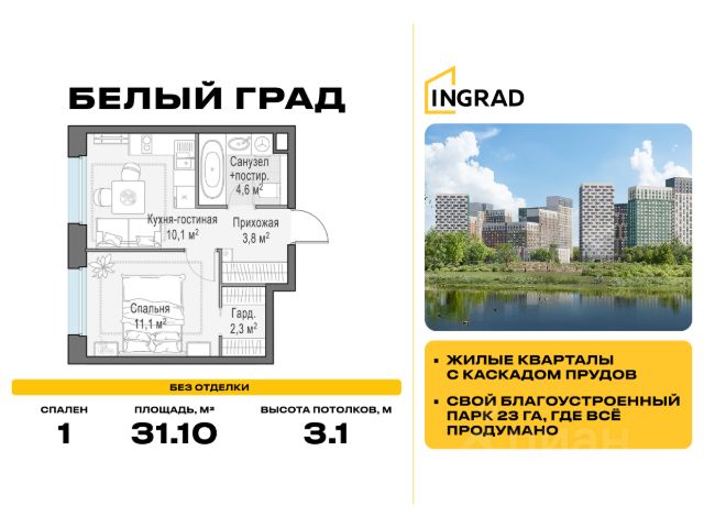Прямая продажа от девелопера. В жилом квартале комфорт-класса "Новое Пушкино" (девелопер Ingrad) продаётся 1-спальная квартира площадью 30.00 кв.м без отделки. Квартира расположена на 13 этаже 13-этажного дома, корпус 27. Расположение и окружение: Жилой квартал "Новое Пушкино" расположен в экологичном городе Пушкино. Рядом с кварталами расположены: Северный лесопарк - 650 м, пушкинский ЦПКиО - 1 км, дендрарий - 1 км, ферма-экопарк "Птичник" - 1,2 км, парк "Серебрянка" вдоль одноимённой реки - 3,5 км. В окрестностях есть большие водоёмы и лесные массивы, где можно загорать, плавать и наслаждаться пикником на берегу. Отличная транспортная доступность: До Ярославского шоссе, по которому можно добраться до МКАД, всего 3 км. Важным пунктом развития инфраструктуры станет строительство Мытищинской хорды (Северного дублёра МКАД). Железнодорожные станции Заветы Ильича и Пушкино расположены в 1,5 км и 3 км.. Инфраструктура: "Новое Пушкино" - новый "5-минутный город" с собственной развитой инфраструктурой, где всё необходимое находится в пределах пяти минут пешей прогулки. Район уже полностью сложился: социальные и сервисные объекты функционируют, обеспечивая жителям высокий уровень комфорта и удобства. В нём уже построено 29 домов, работают два детских сада и школа. Свой прогулочный бульвар протяжённостью более 500 м располагает пространствами для отдыха, занятий спортом и встреч с друзьями. Здесь есть велосипедные дорожки, воркаут-зоны, теннисные столы и детские площадки. На первых этажах домов открыты кафе, магазины и сервисы, которые упрощают повседневные дела. Запланировано строительство торгового центра. Стоимость квартиры - 6 350 000 Р. Срок сдачи - 4 квартал 2024. Более подробную информацию по объекту уточняйте по телефону и в отделе продаж.